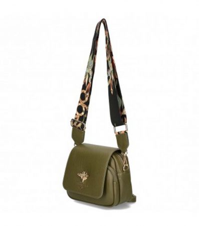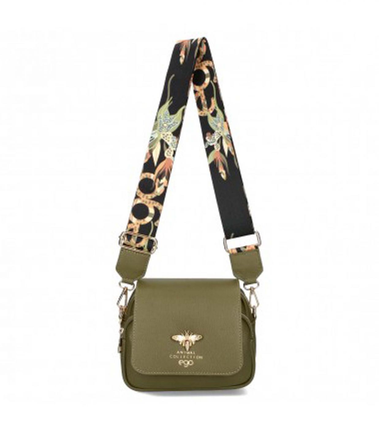 Компактна кожена дамска чанта EGO за през рамо с цветна дръжка ch0917z1