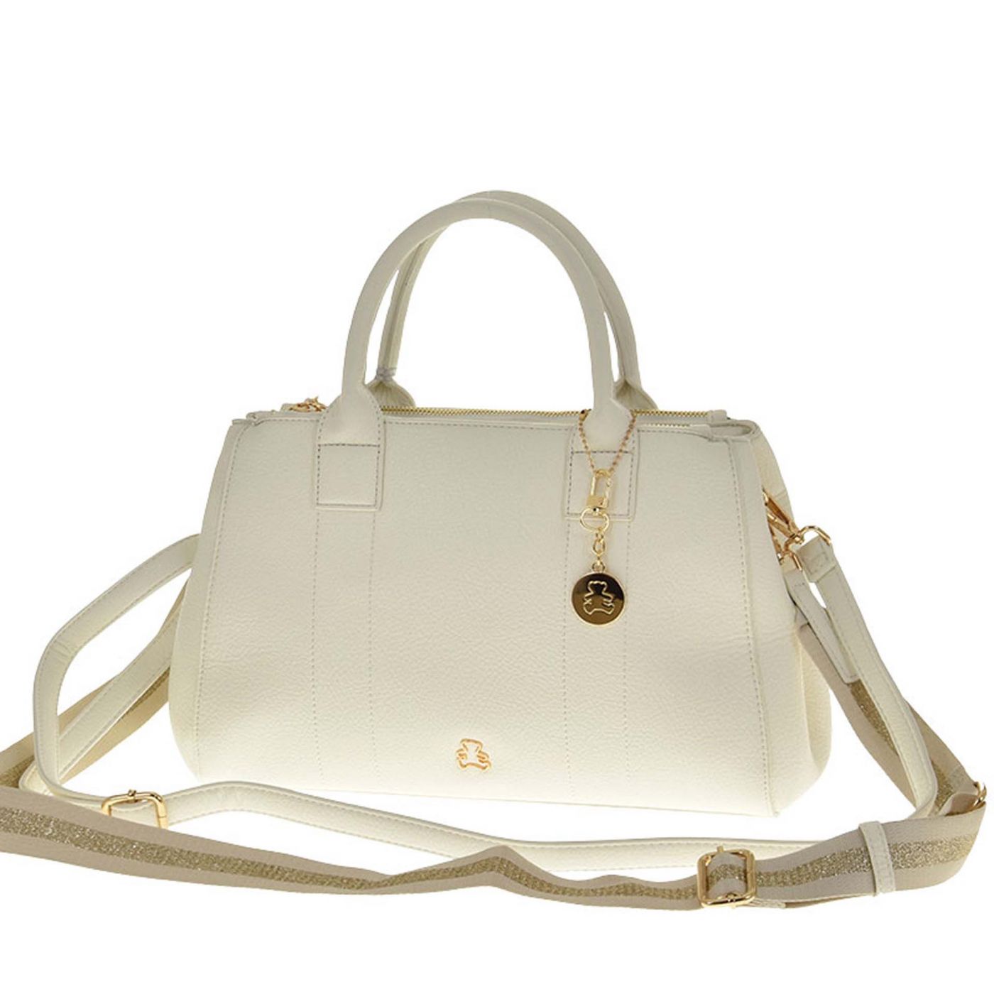 Бяла дамска чанта с къси и дълга дръжка с метална декорация ch25015b