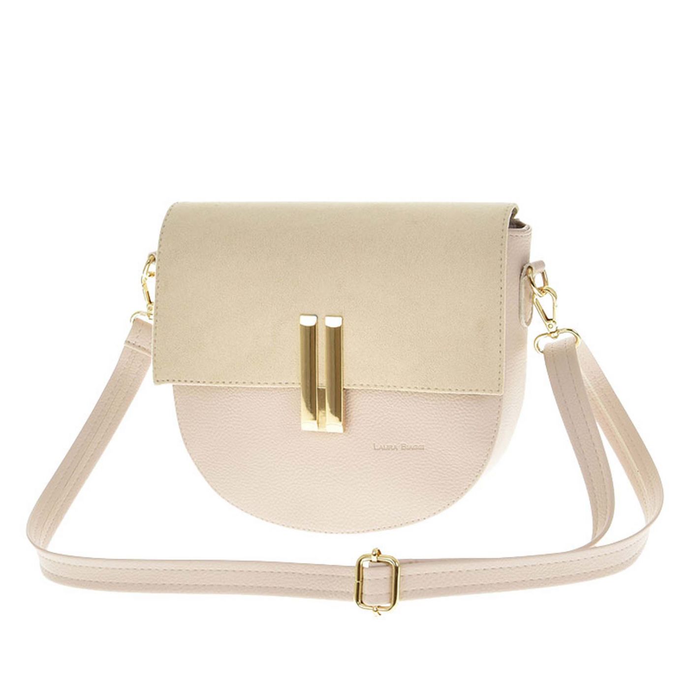 Кокетна дамска чанта с капак и златист елемент в бежоя цвят ch2505bj