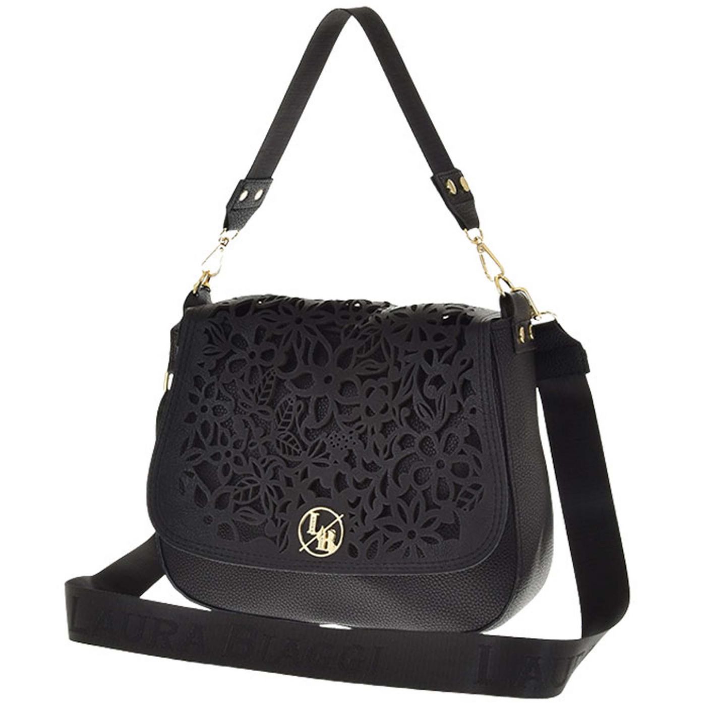 Дизайнерска чанта от колекцията на LAURA BIAGGI в черен цвят с лазерна перфорация ch259ch