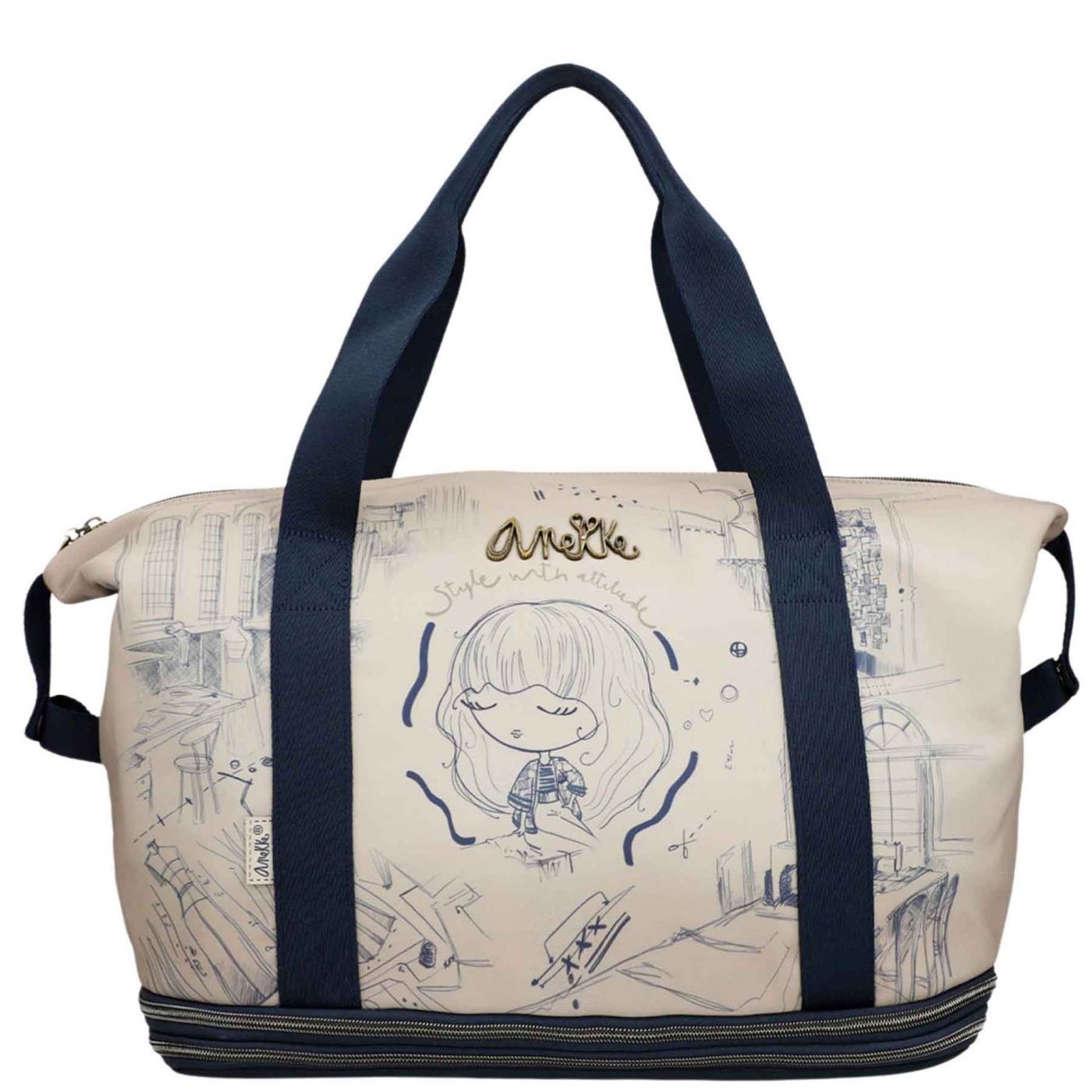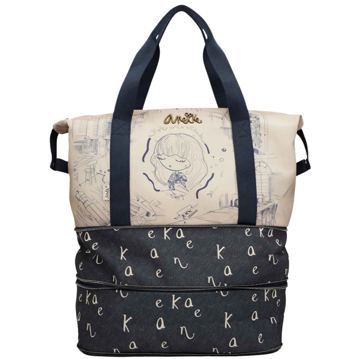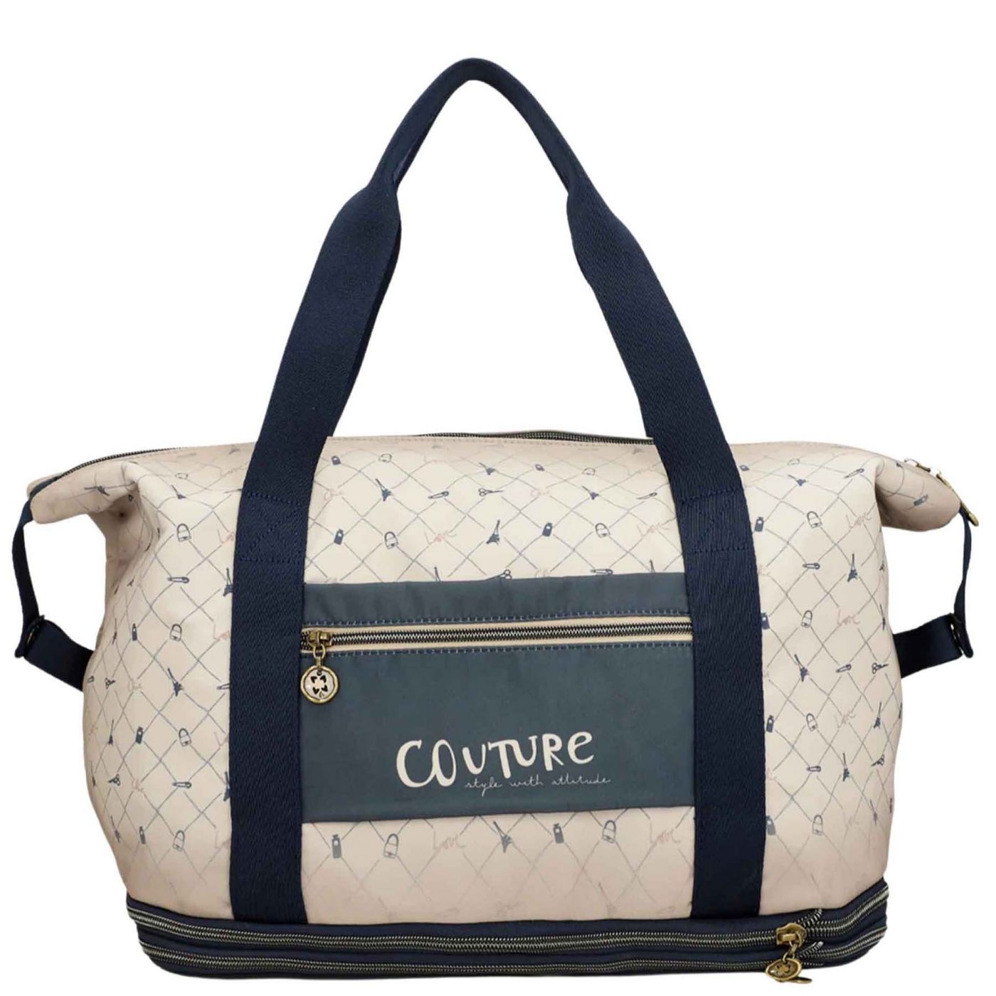 Дизайнерска дамска чанта за пътуване с ефектен принт ANEKKE в бежов цвят ch41588-003