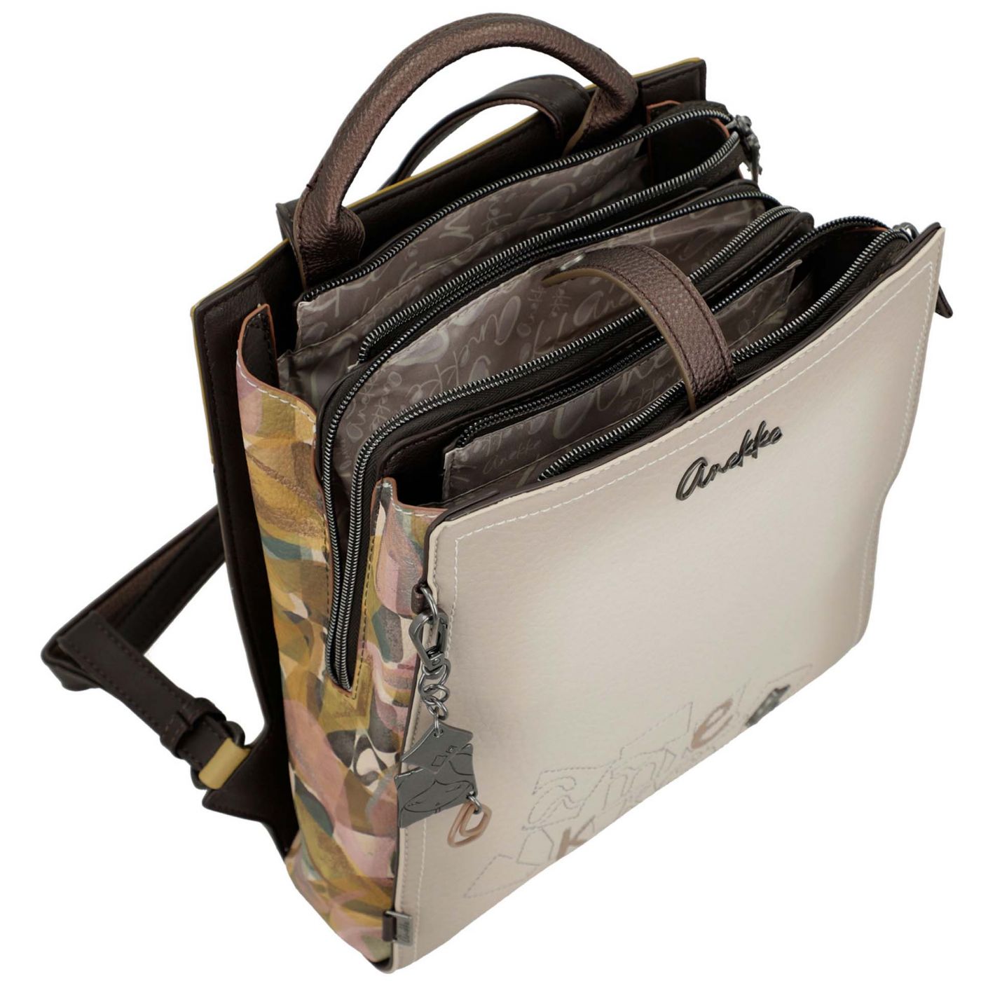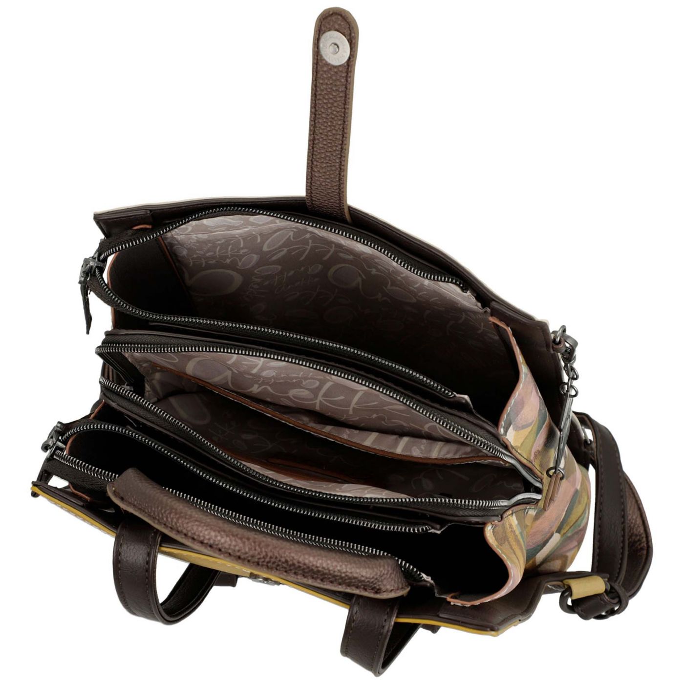 Дизайнерска дамска раница с три самостоятелни отделения в бежово и кафяво ch42725-273