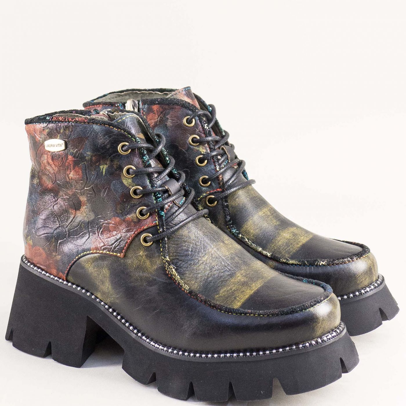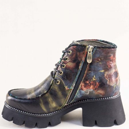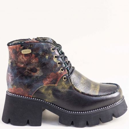LAURA VITA дамски боти в черен цвят с атрактивен принт на среден ток 0007231chps