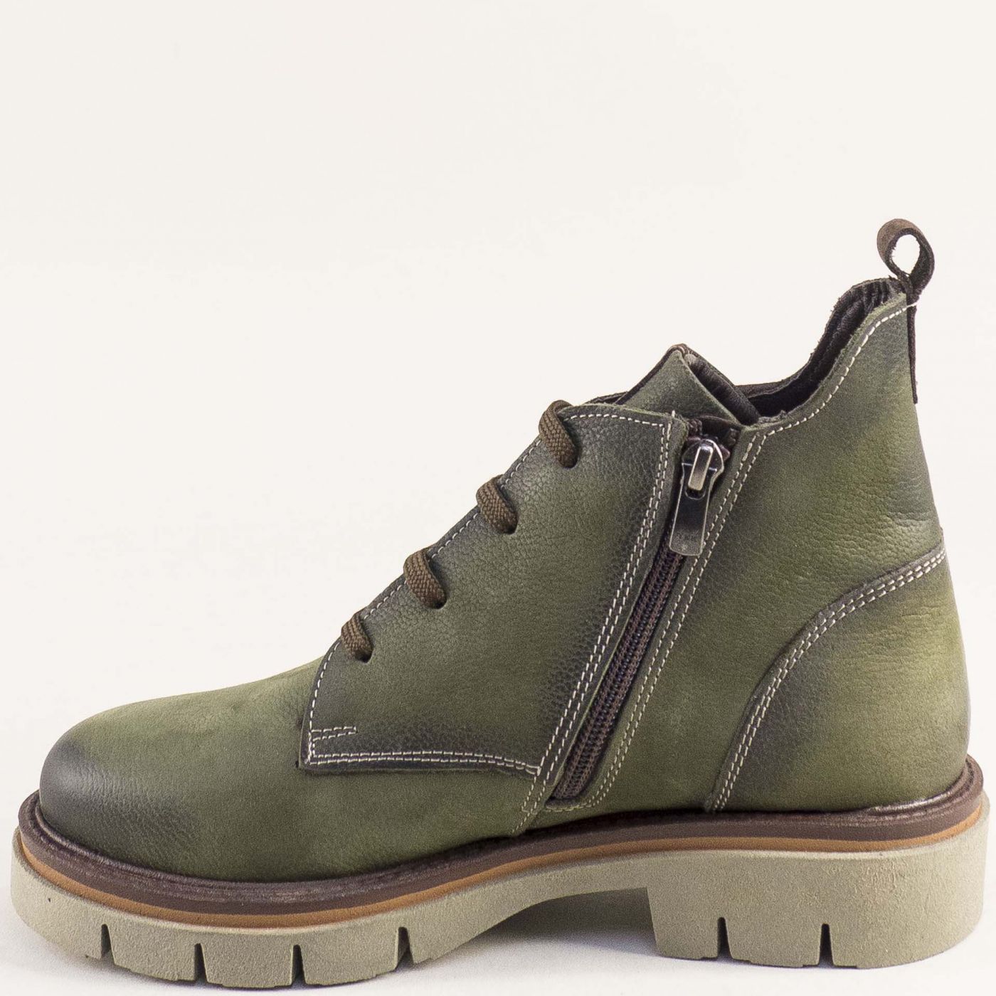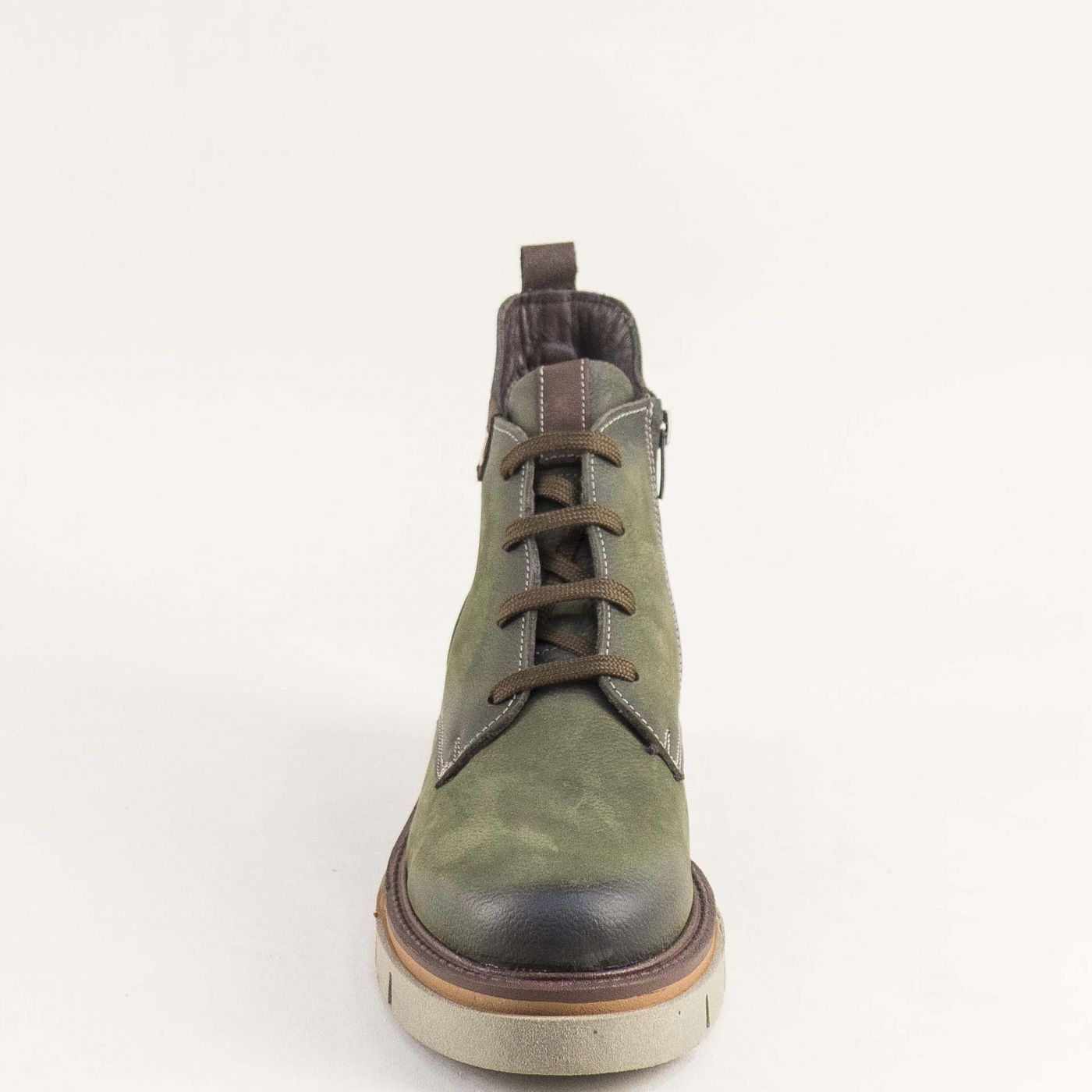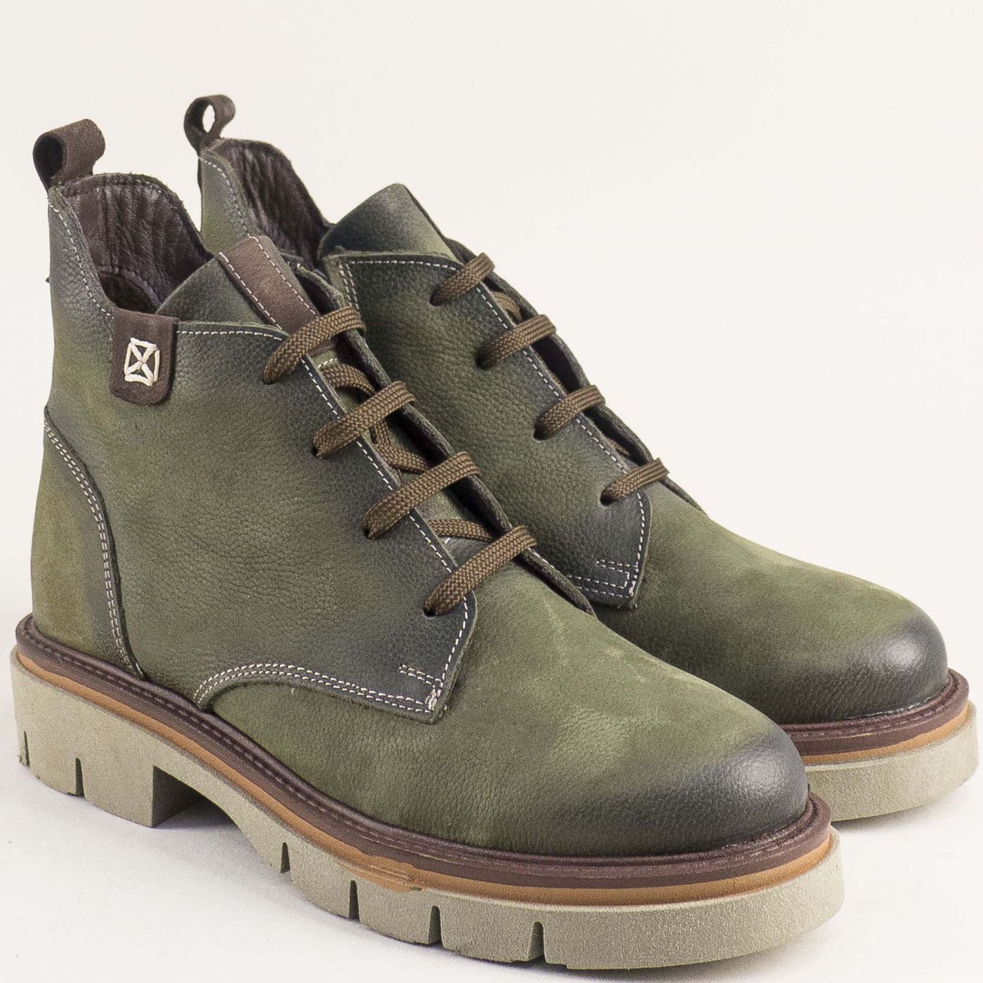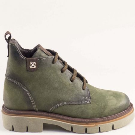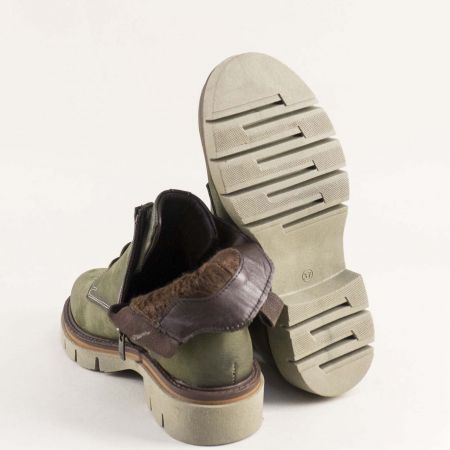 Зелени кларкове от набук с опушен ефект и със светлокафяви детайли 010824nz