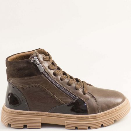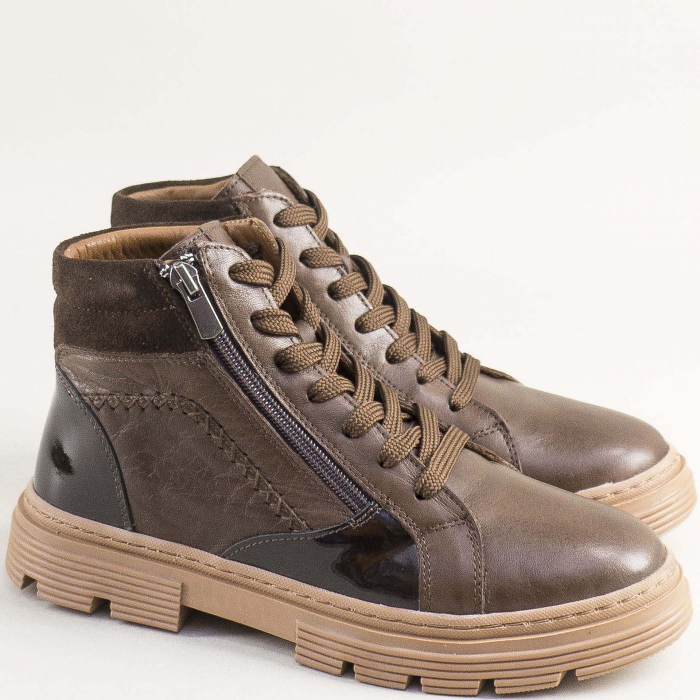 Комфортни дамски боти в кафяв цвят на грайферно ходило 10303k