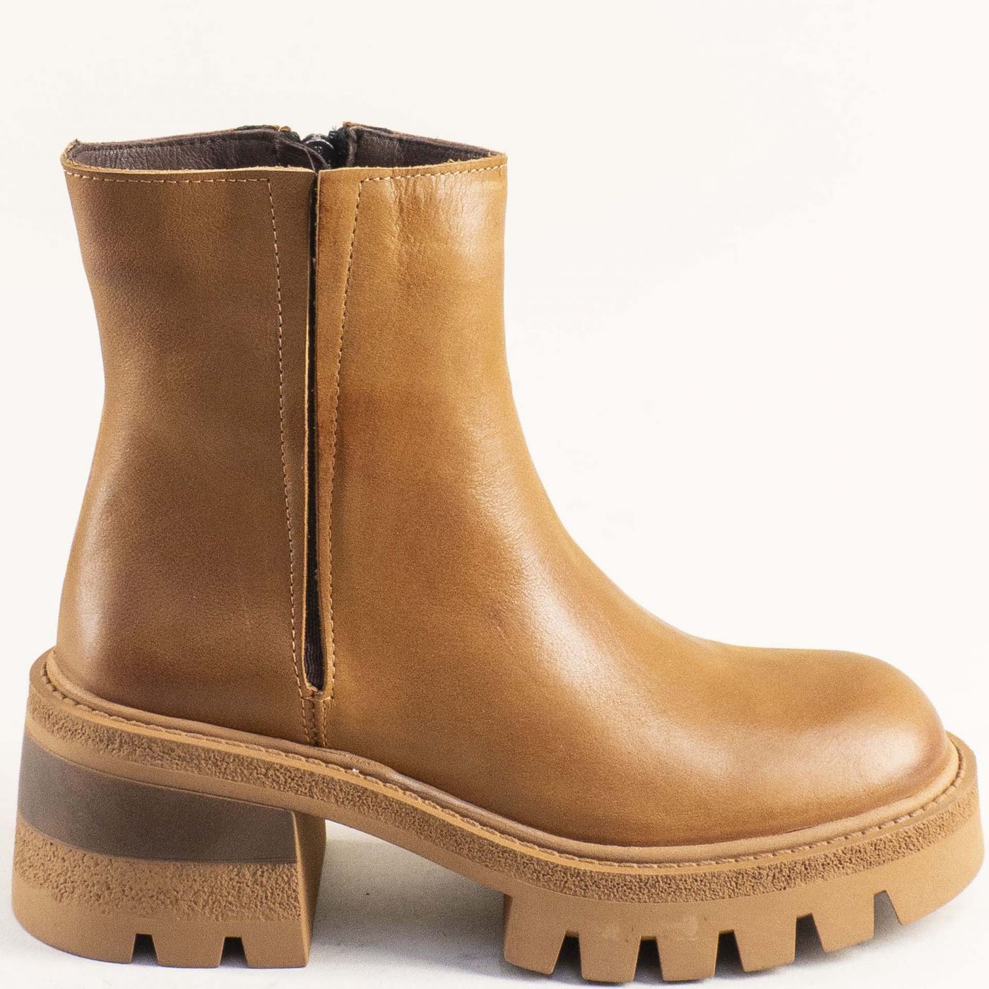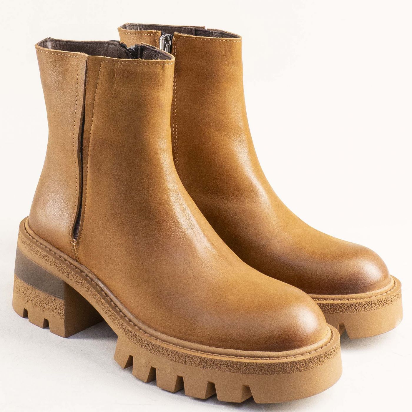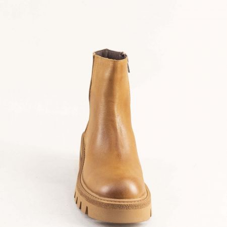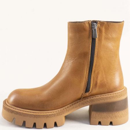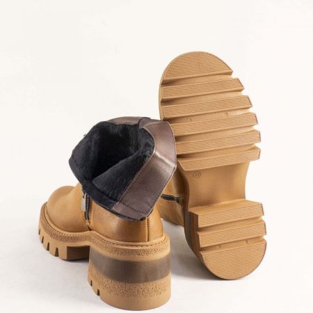 Топли дамски боти естествена кожа в кафяв цвят на платформа и ток 10466k