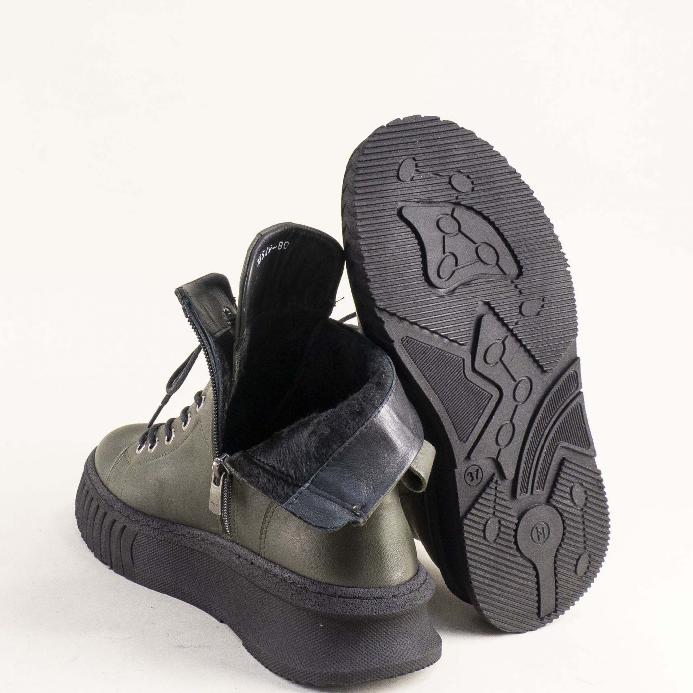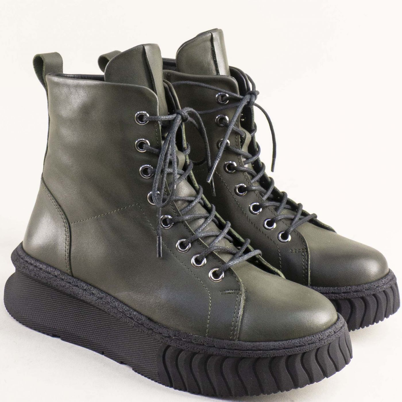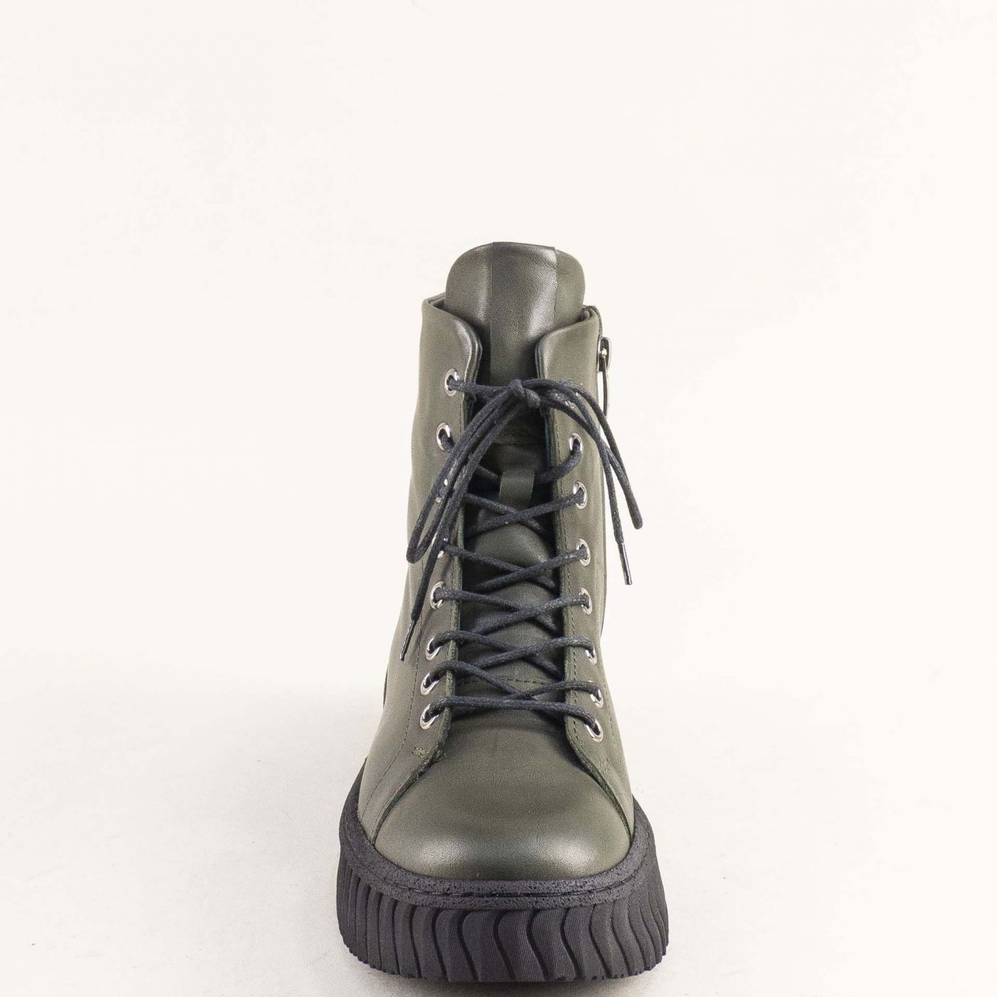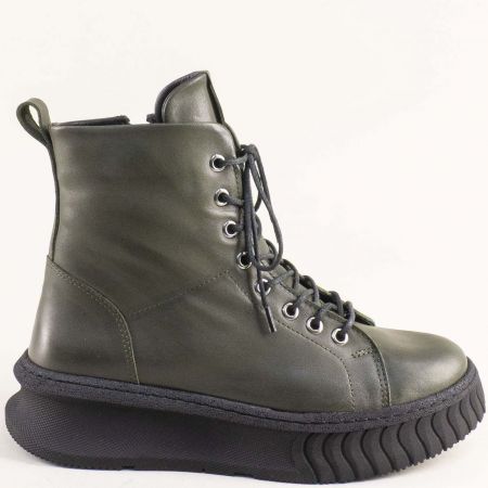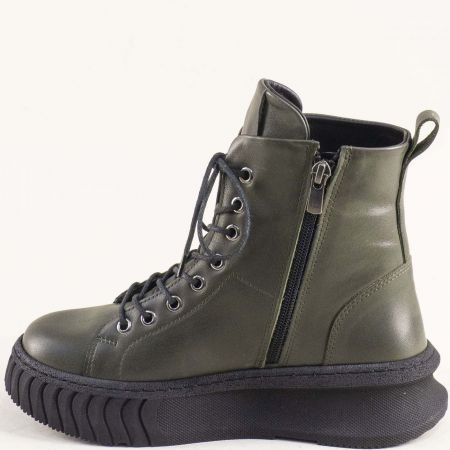 Зелени дамски боти на модерно ходило с връзки и цип 10549z