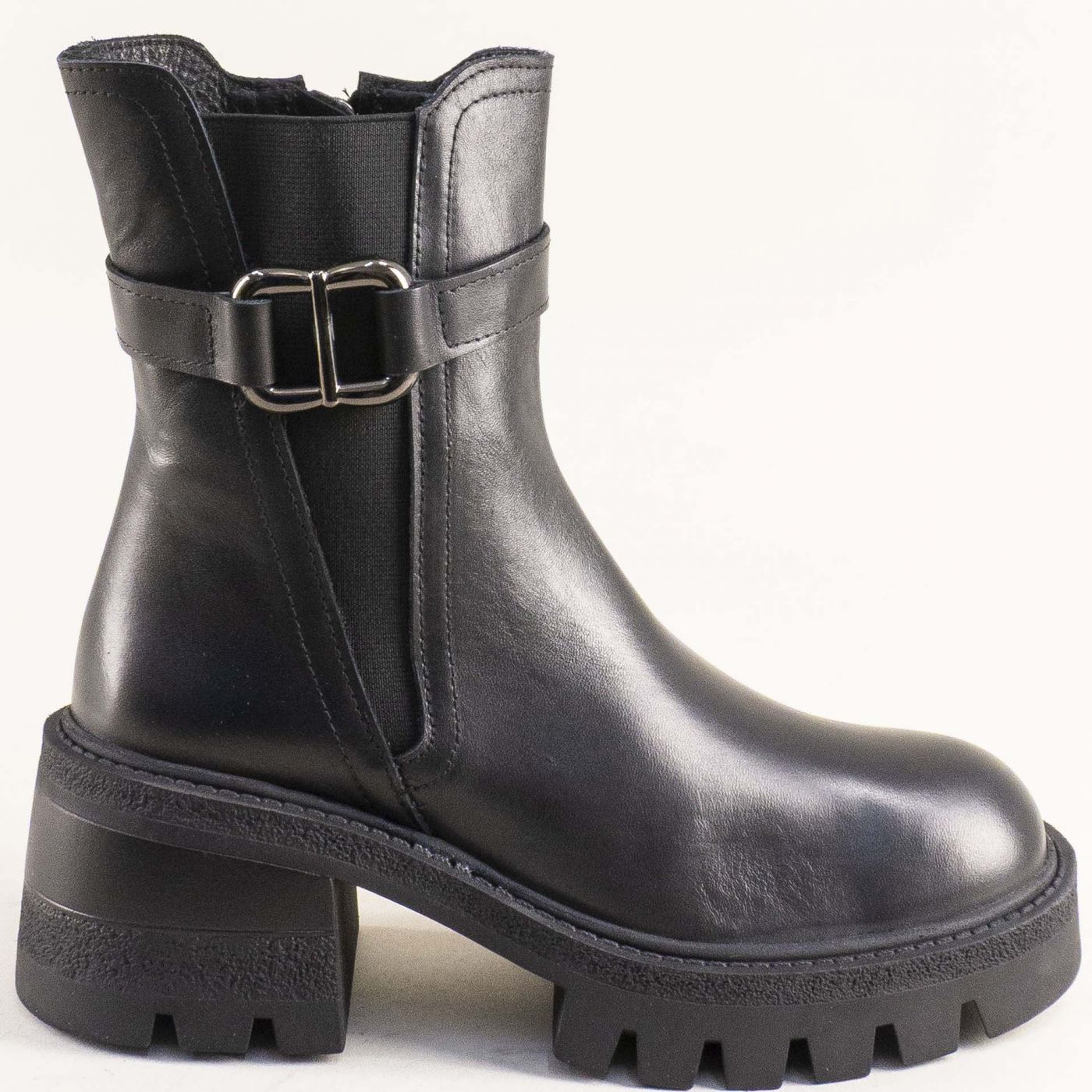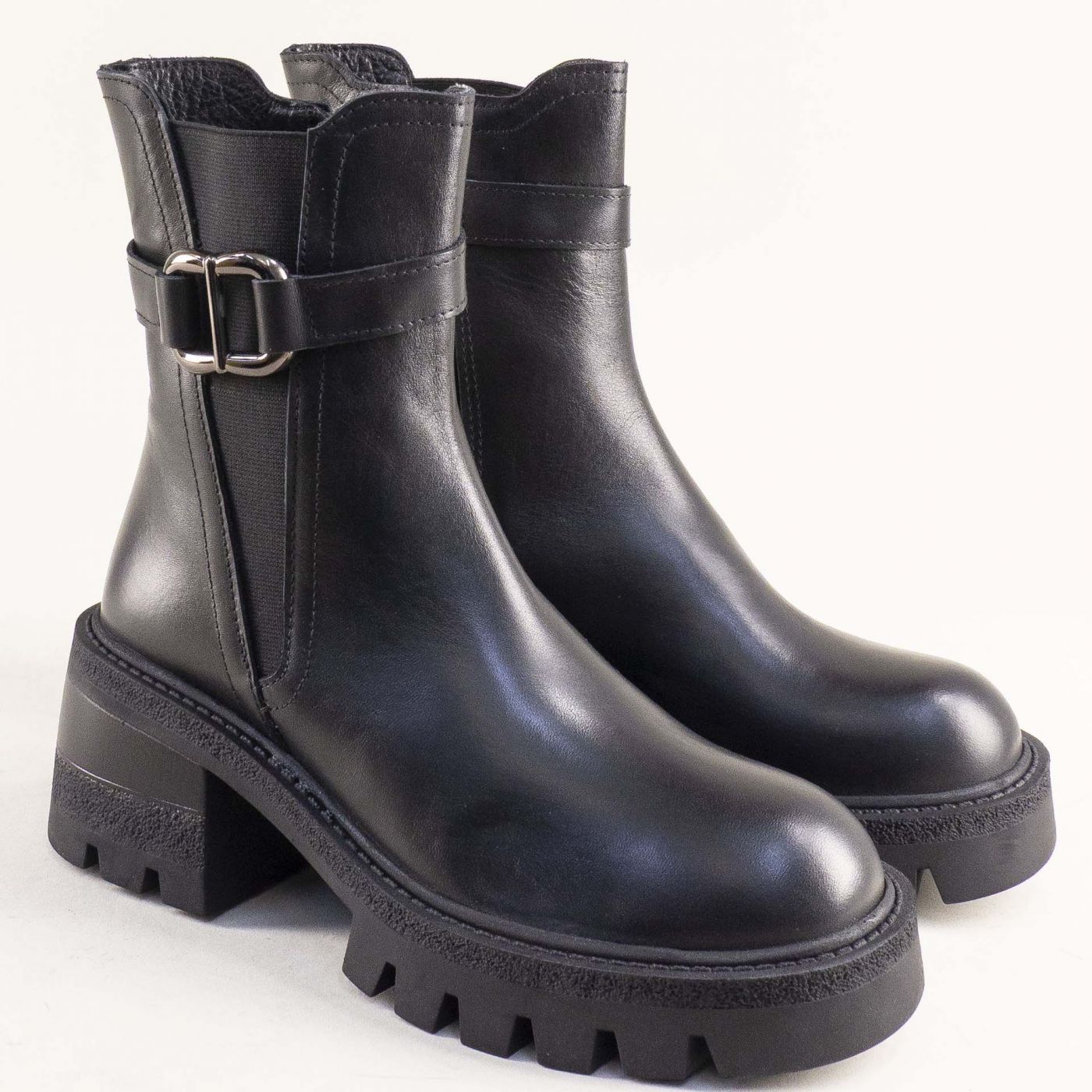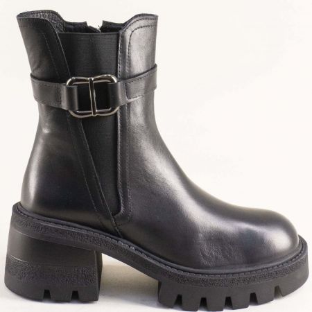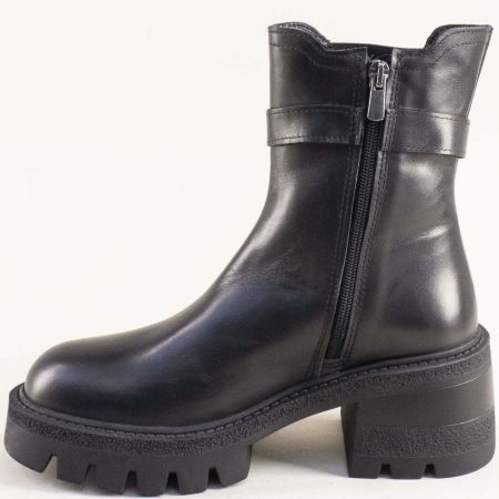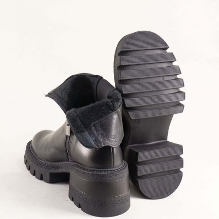 Черни дамски боти от кожа с дебела грайферна подметка и модерна визия 10640ch