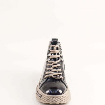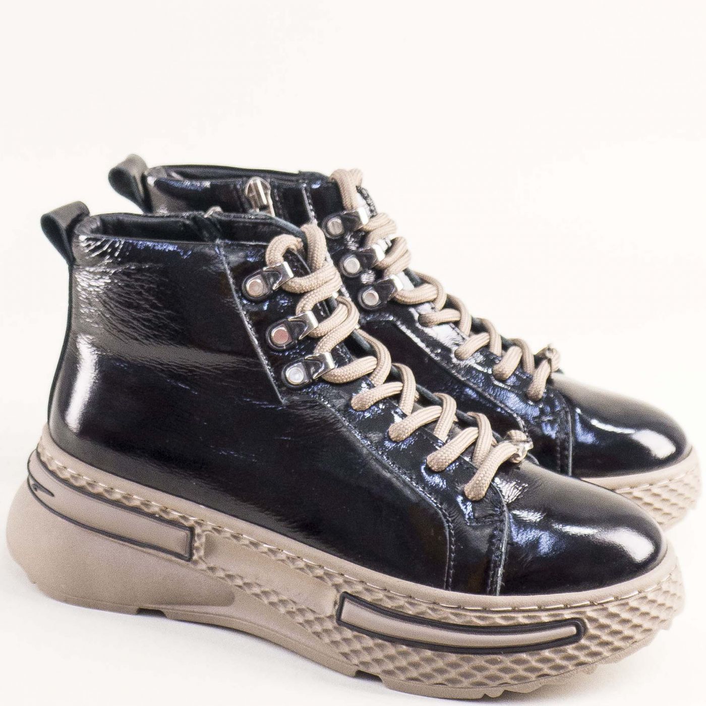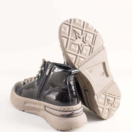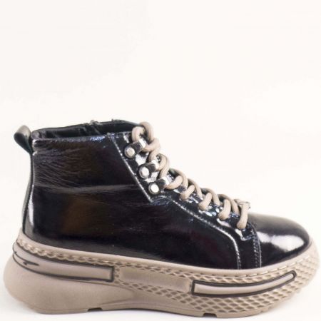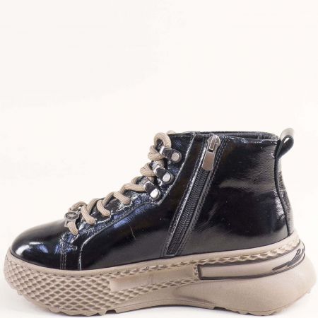 Модерни дамски боти на атрактивно ходило в черен естествен лак 1356lch1