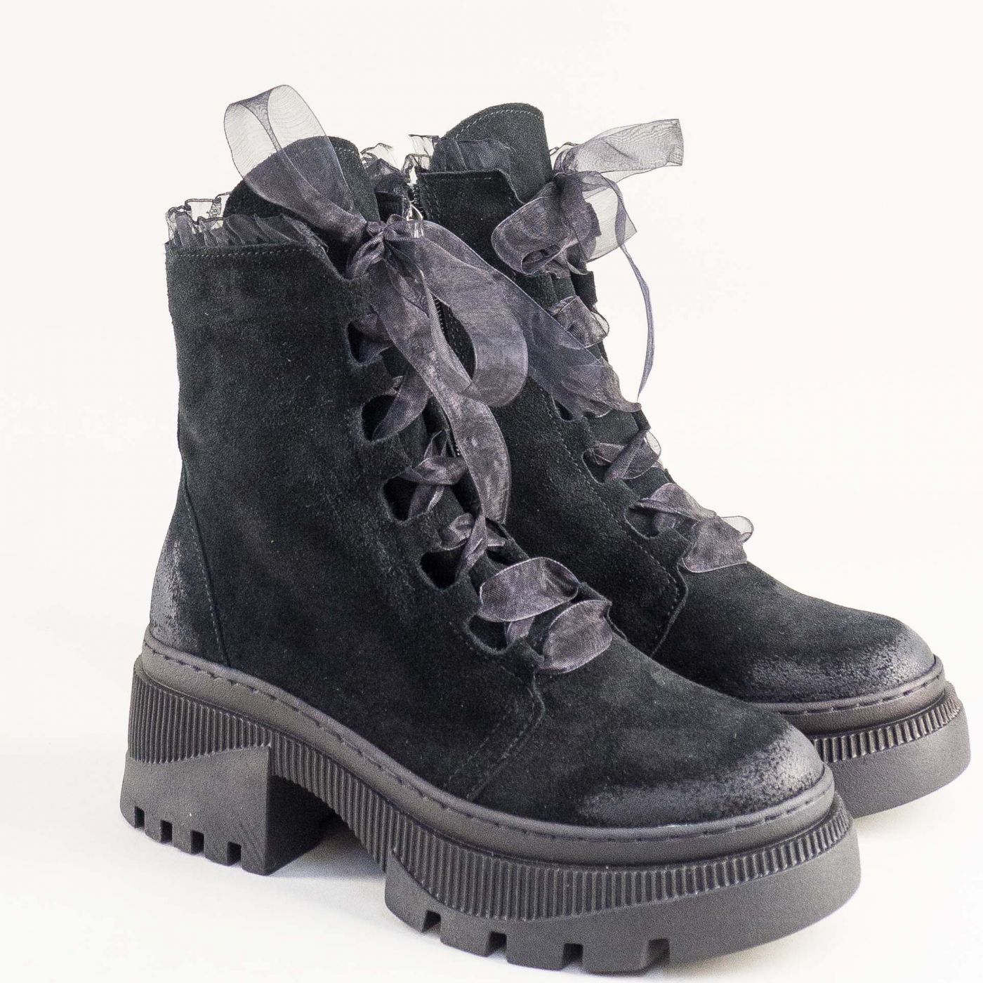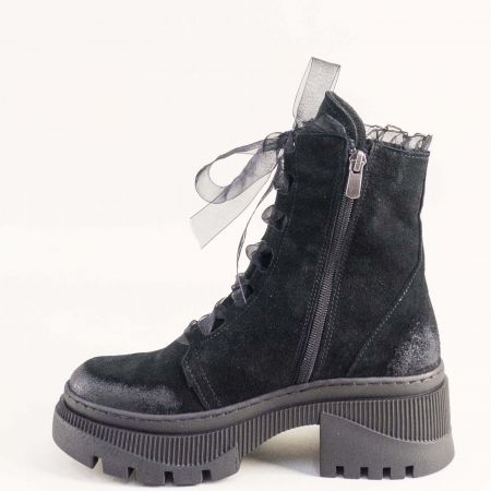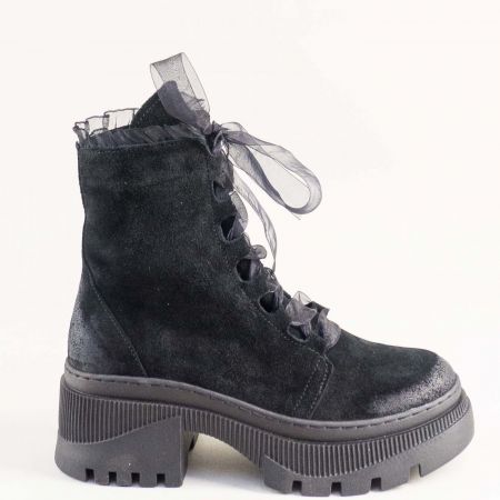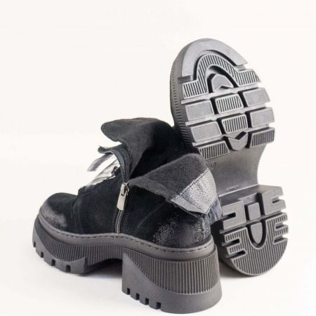 Дамски боти на модерно ходило с атрактивна визия в черен велур 221vch