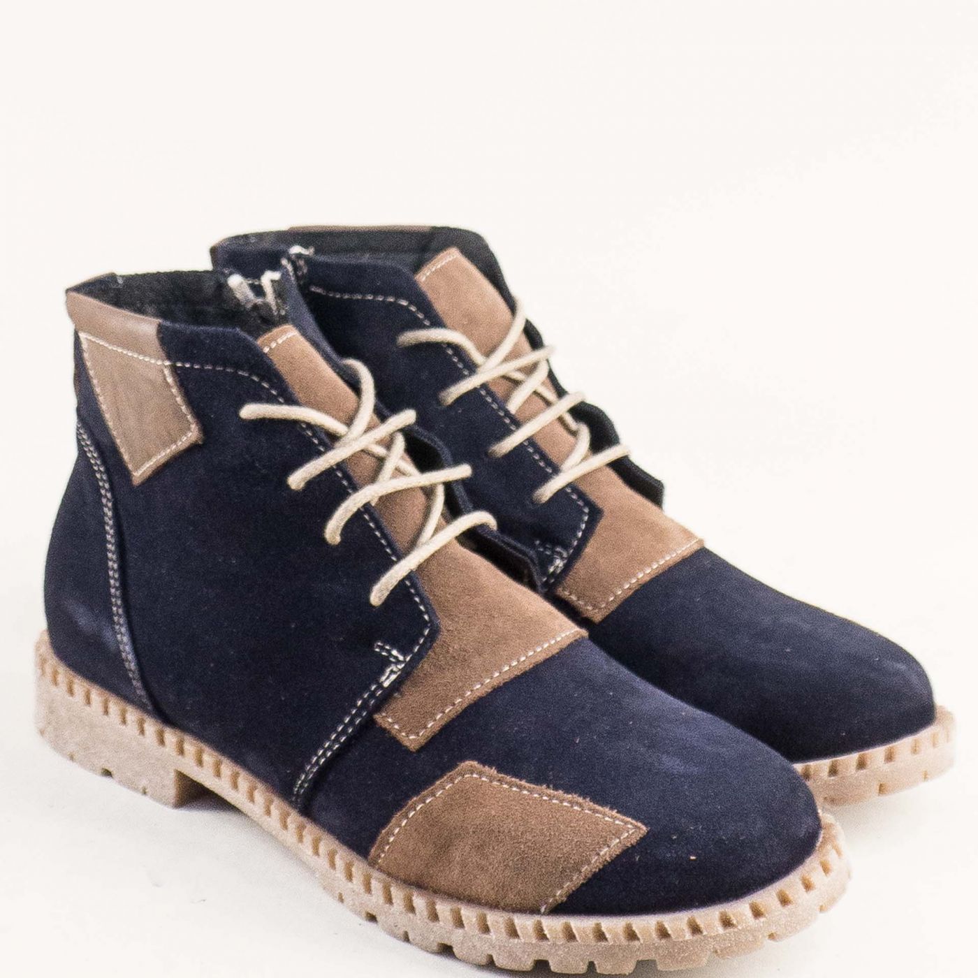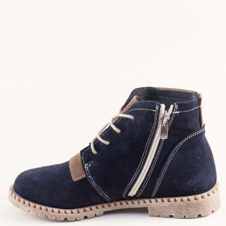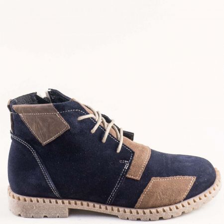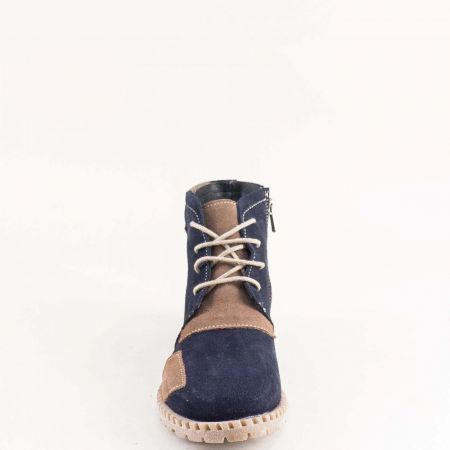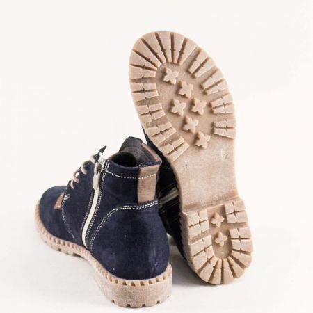 Дамски кларкове на каучуково ходило в син велур с бежова декорация 2430321vs