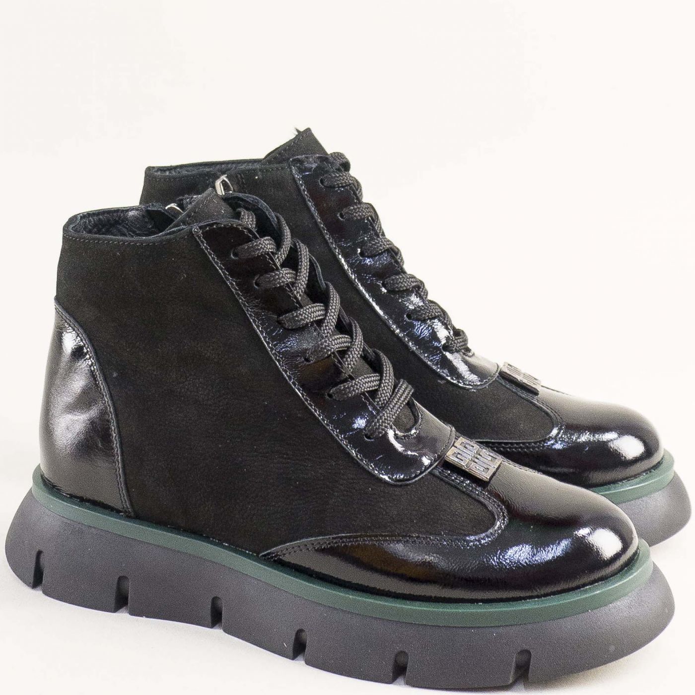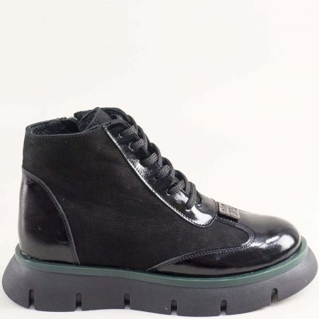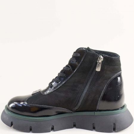 Фешън дамски боти в лак и набук в черен цвят с атрактивно ходило 2601nchlch