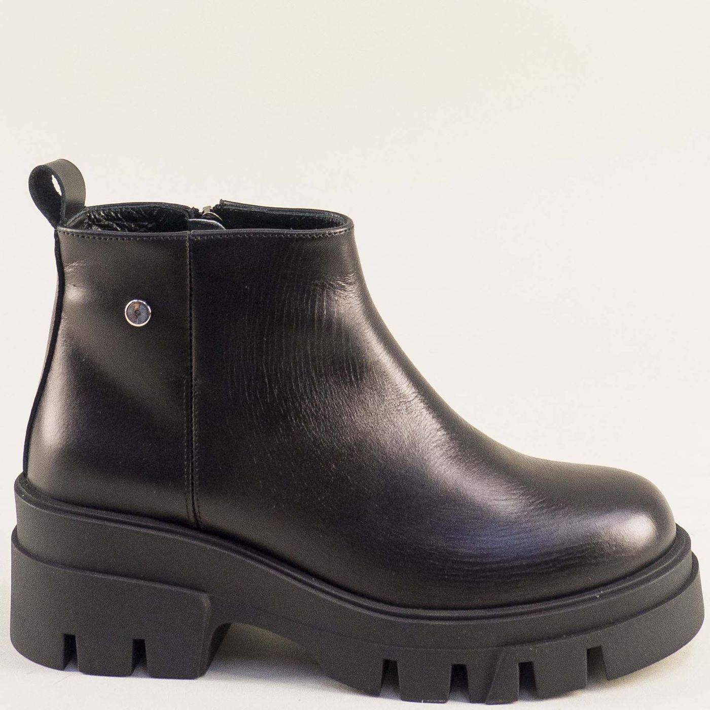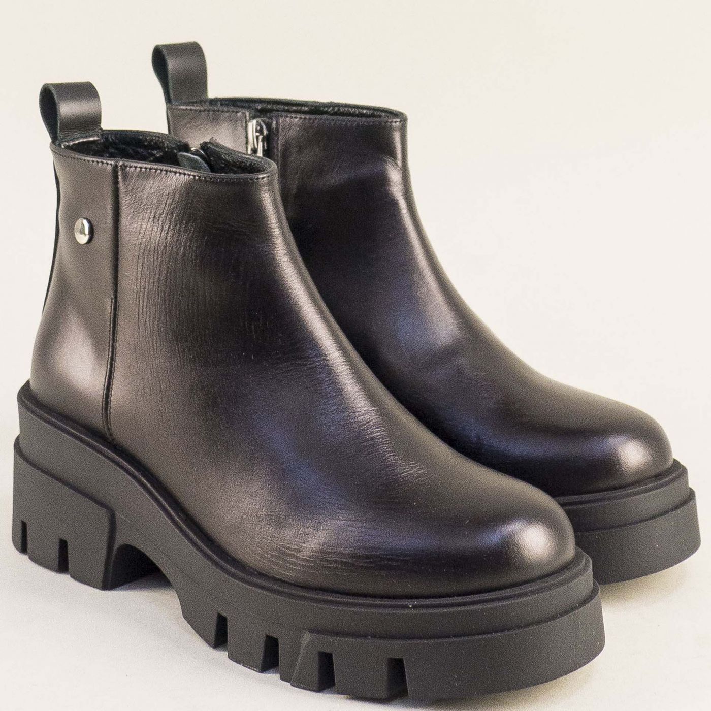 Изчистени дамски боти на грайферно ходило с цип в черна кожа 44202ch