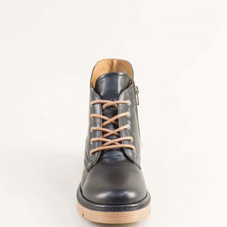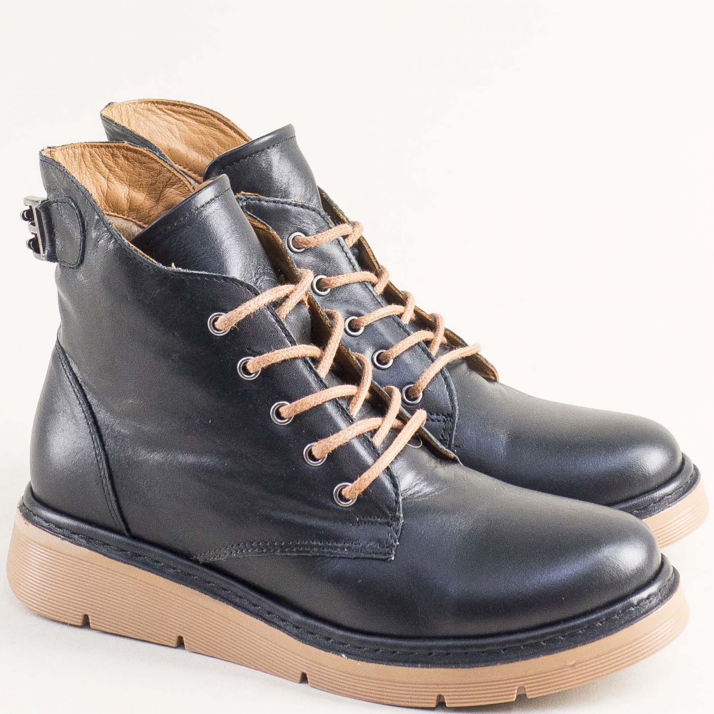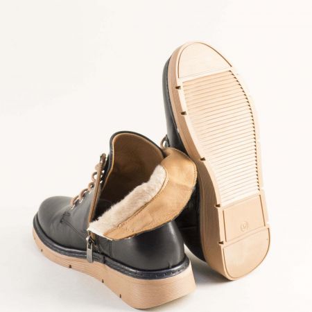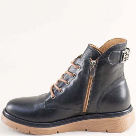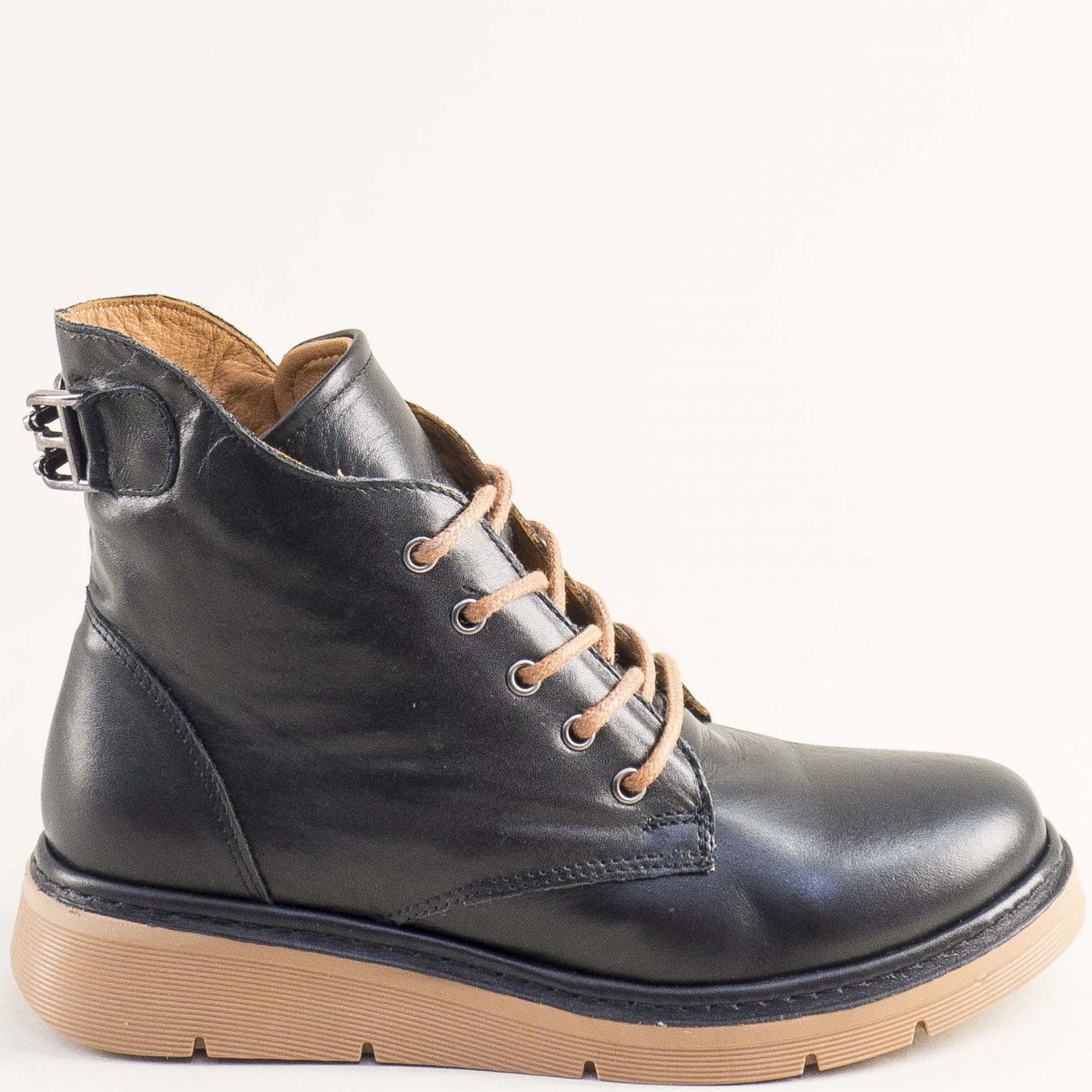 Черни кожени дамски боти с кафяви връзки и каучуково ходило 613chk