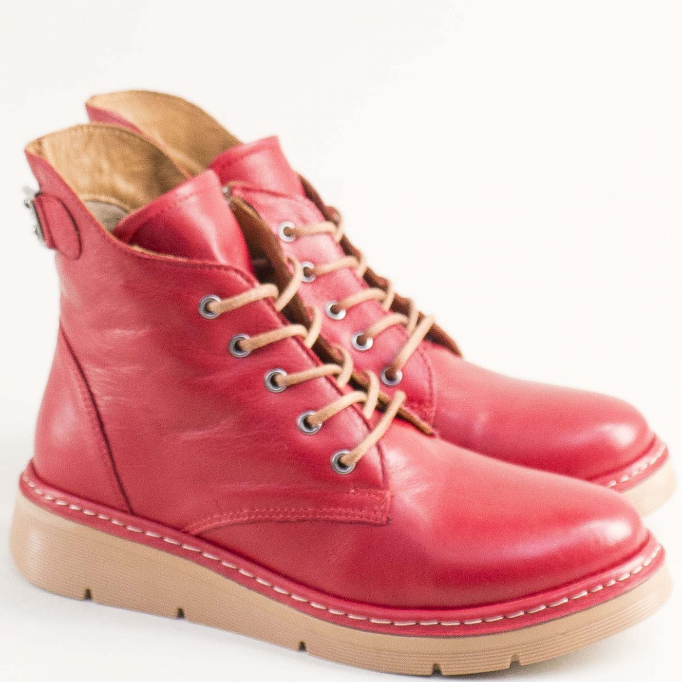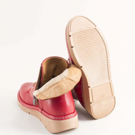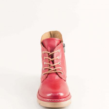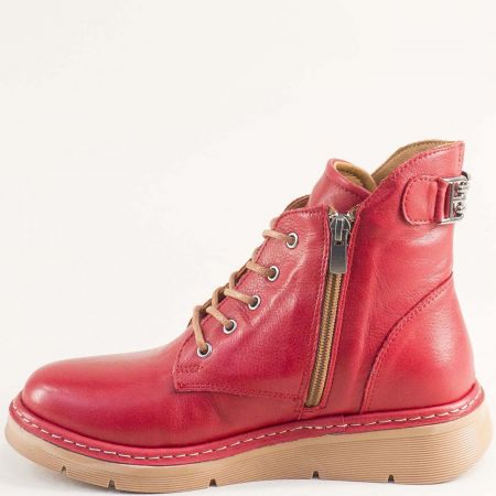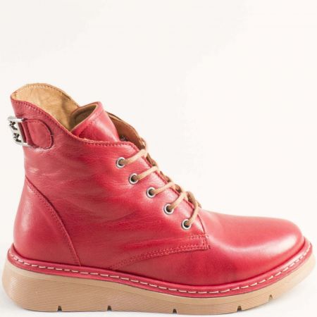 Атрактивни дамски боти в червен цявт на бежово ходило и връзки 613chv