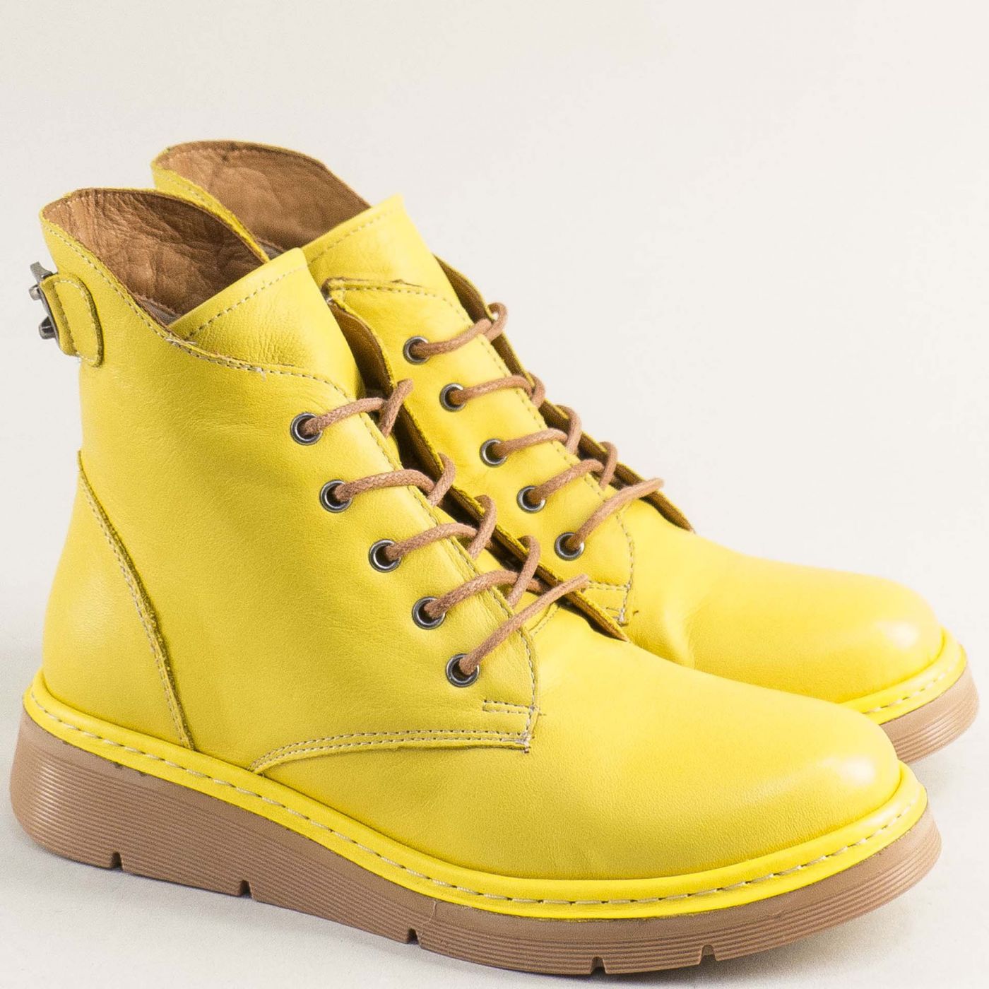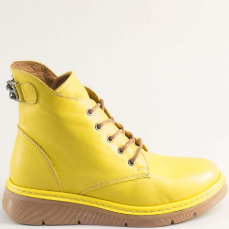 Класически дамски боти в атрактивен жълт цвят на равно ходило 613j