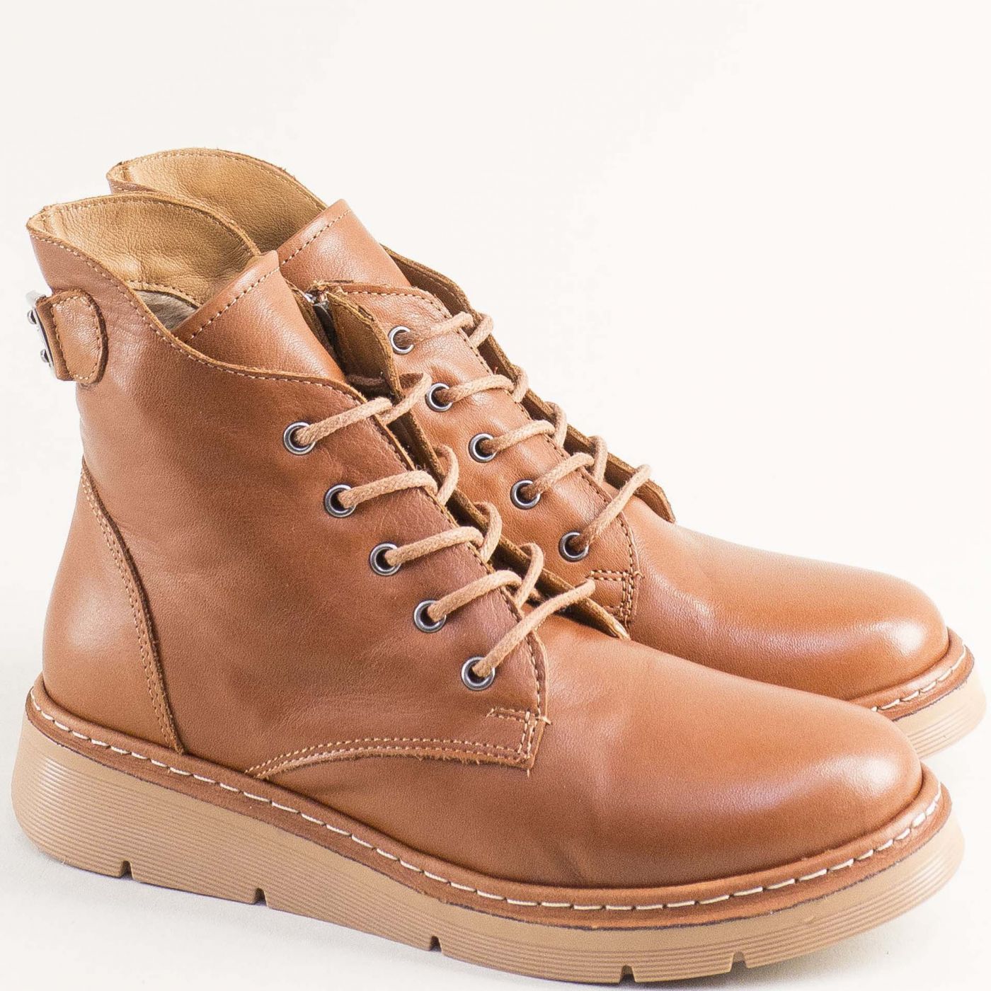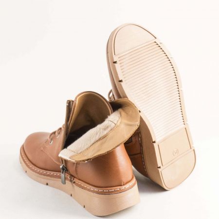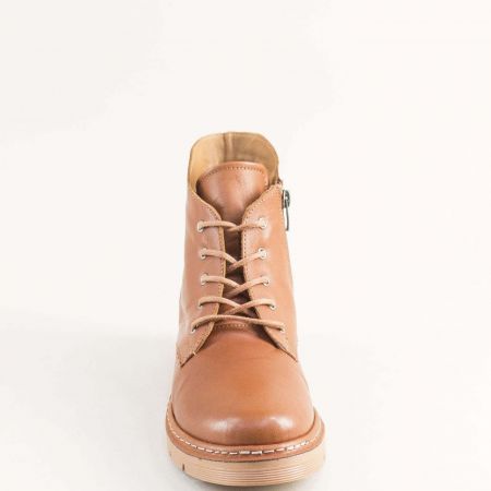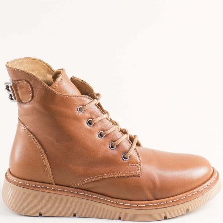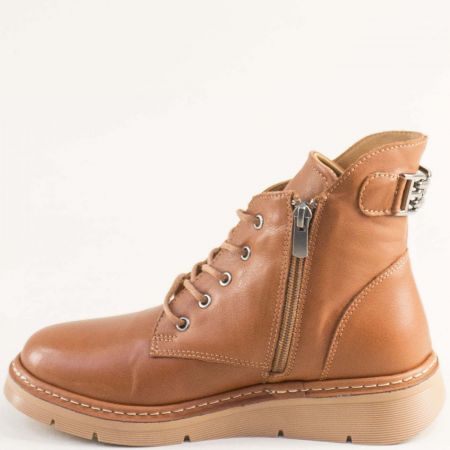 Ежедневни дамски боти с цип и връзки естествена кожа в кафяво 613k