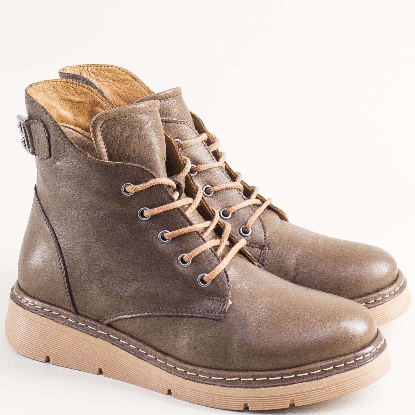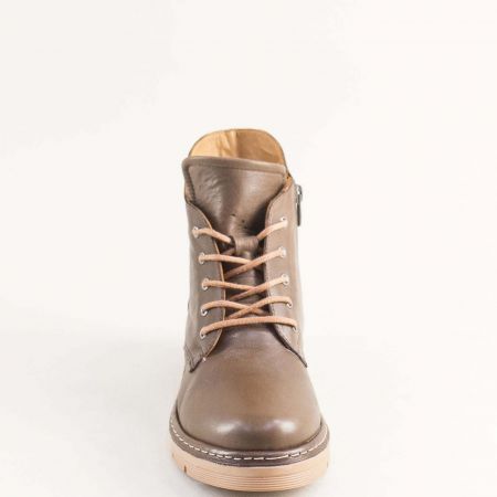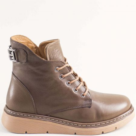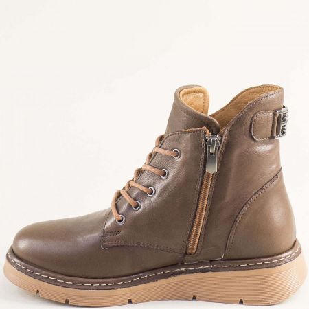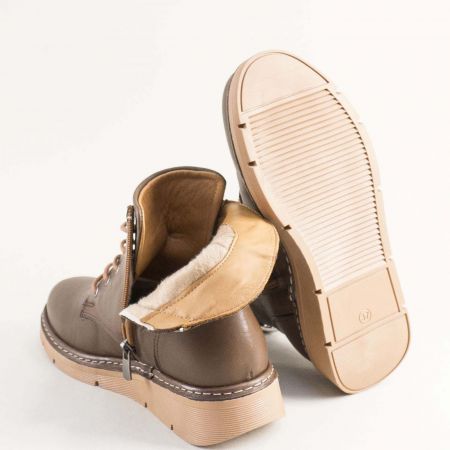 Спортни дамски боти с топъл хастар на равно ходило в кафява кожа 613kk