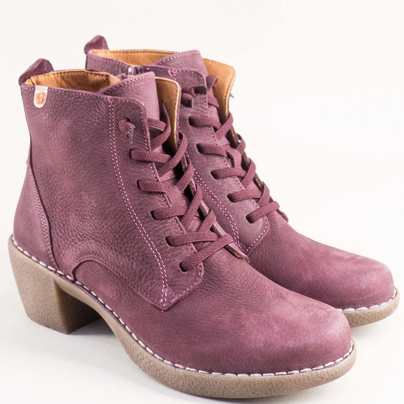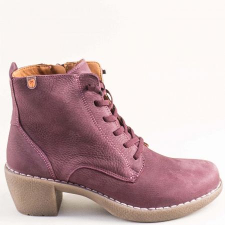 Стилни дамски боти JUNGLA в модерен бордо цвят на каучуково ходило 7512nbd
