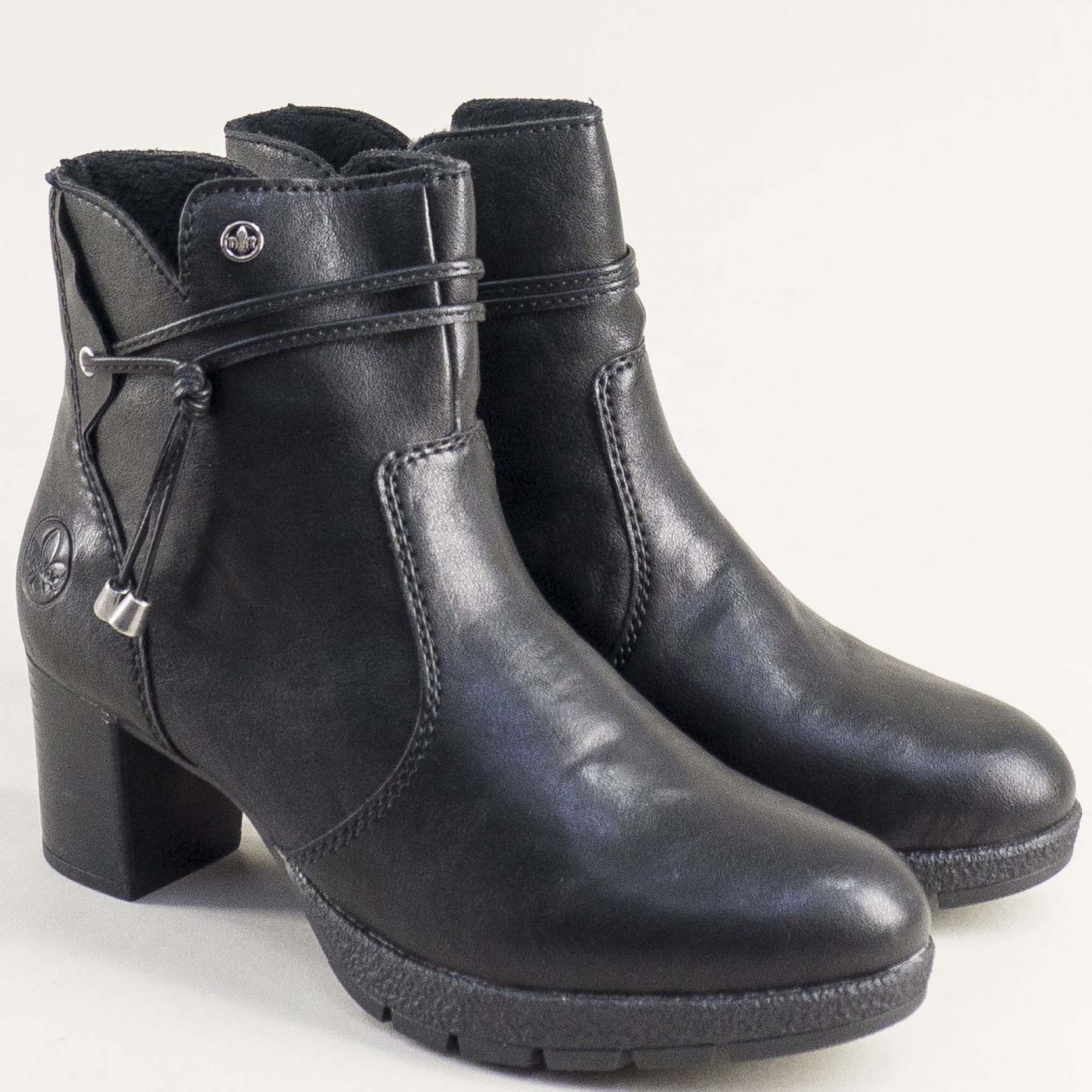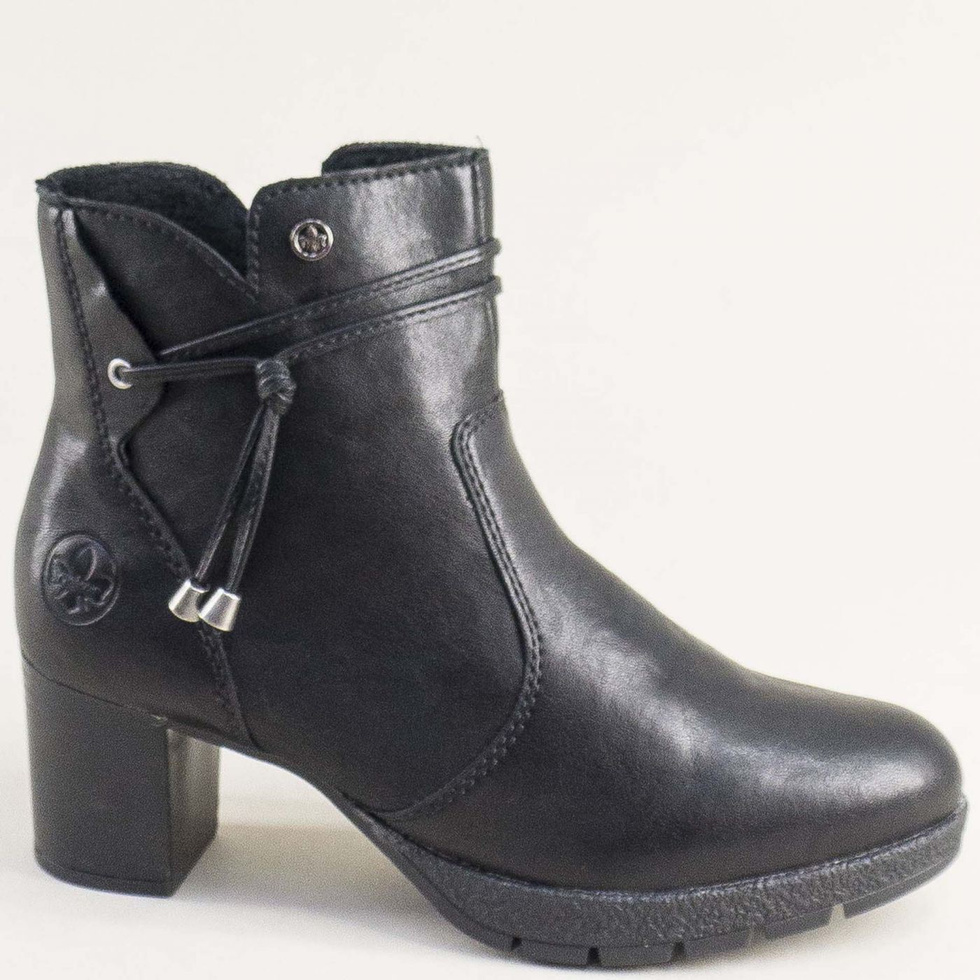 Черни дамски боти RIEKER на среден ток с нежна декорация 77667-00