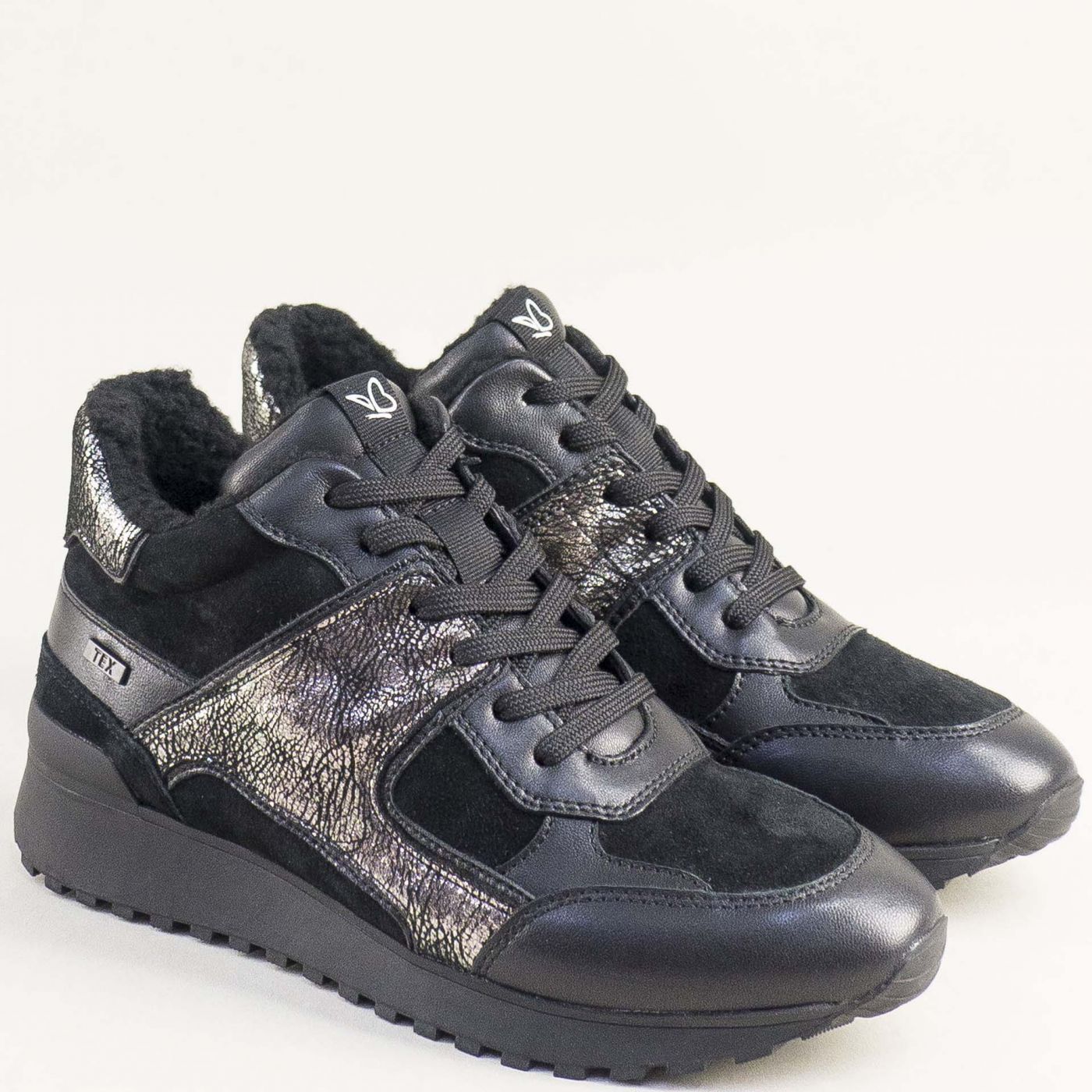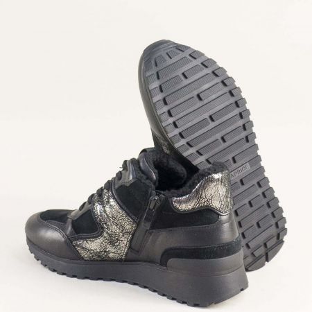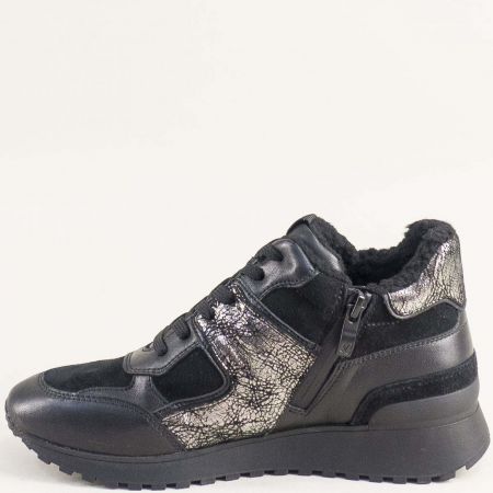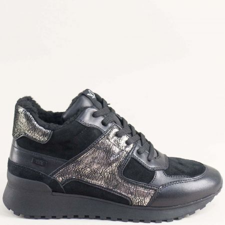 CAPRICE дамски боти от естествен черен велур и сребрист блясък 9-26204-019