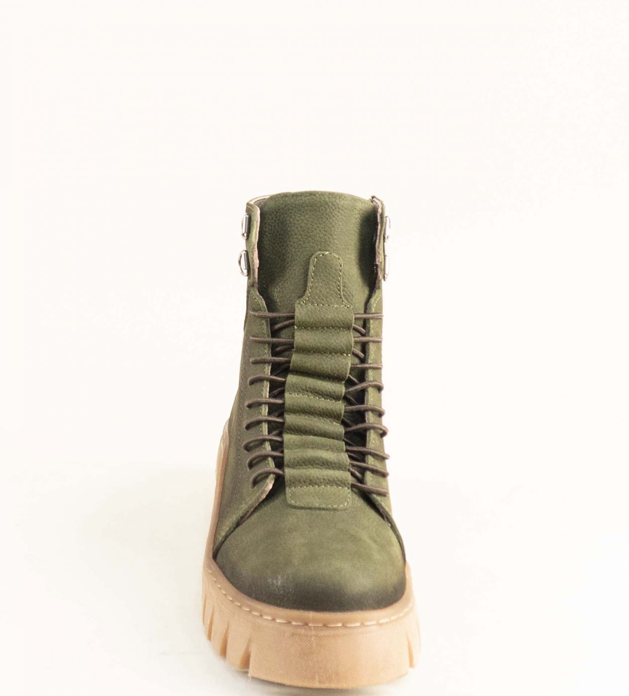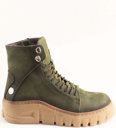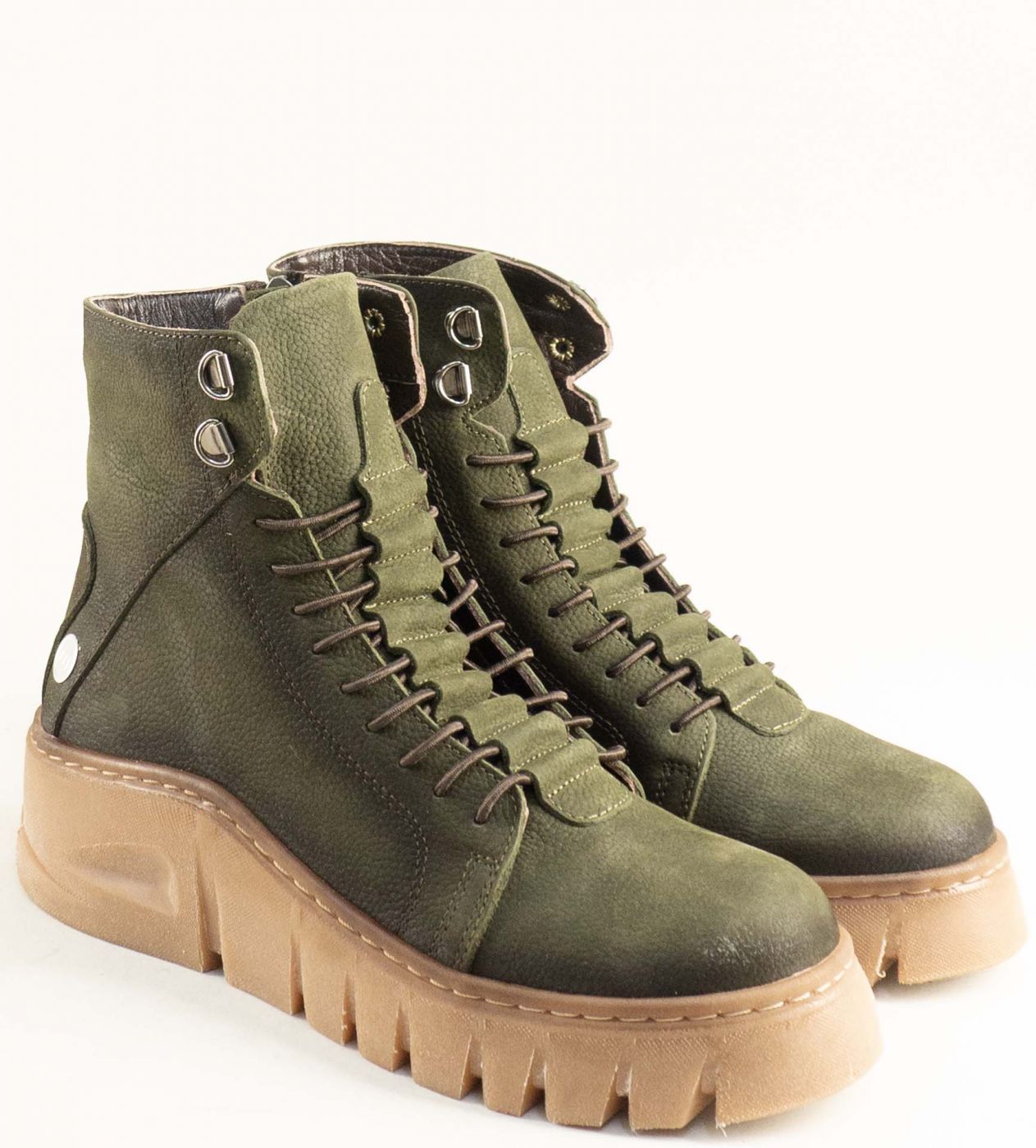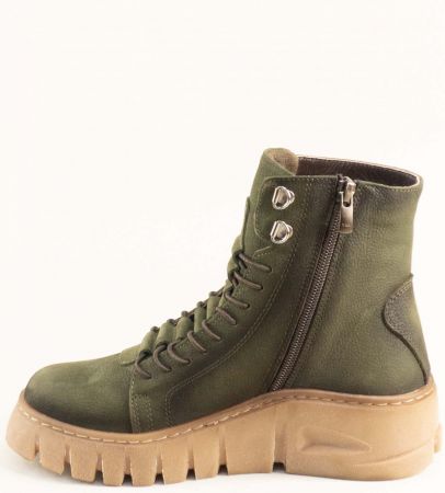 Зелени дамски боти на бежово ходило с връзки и цип aj1450nz