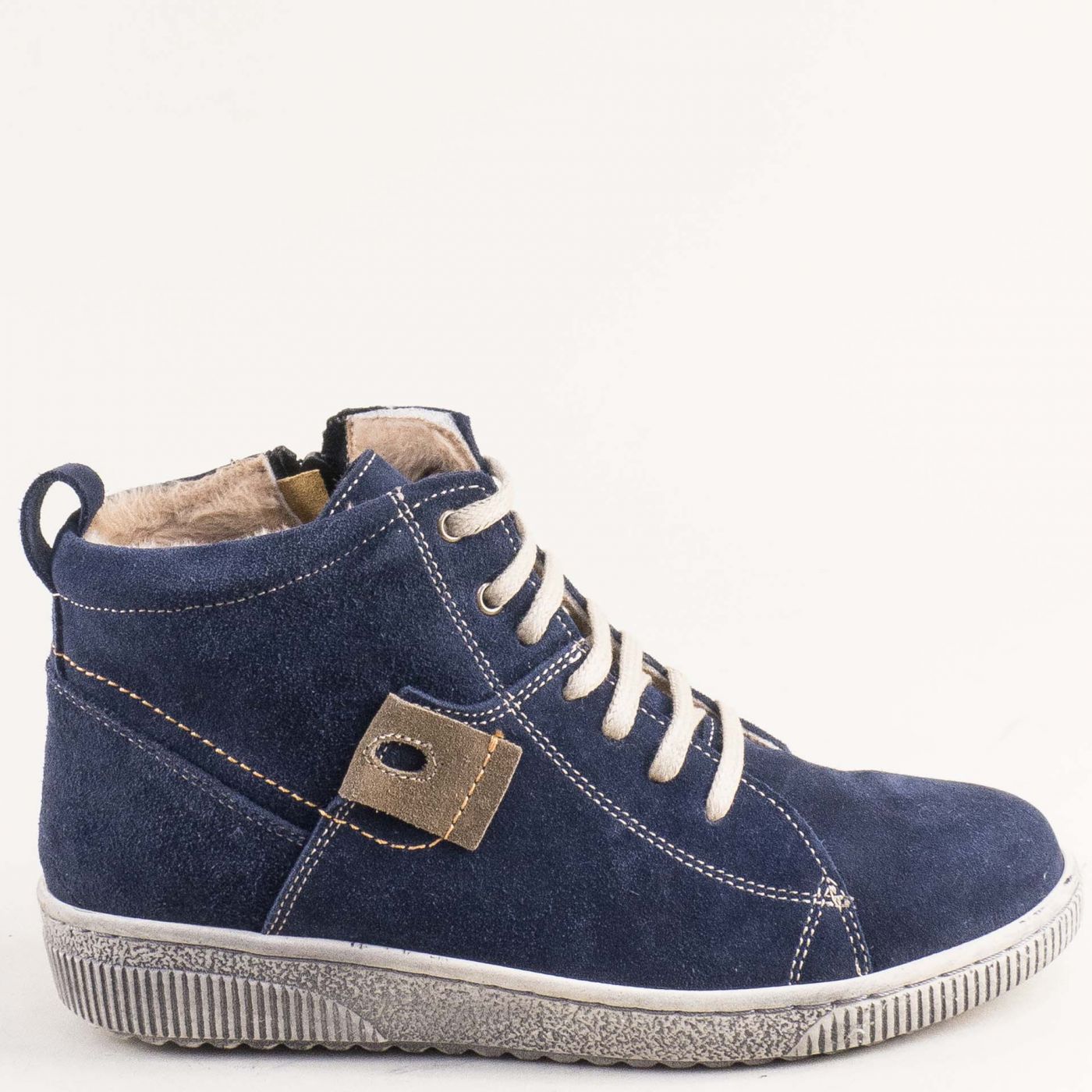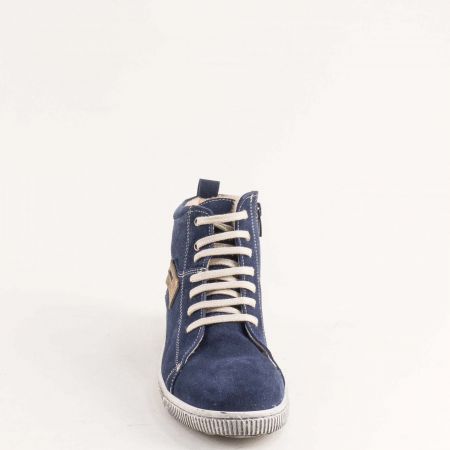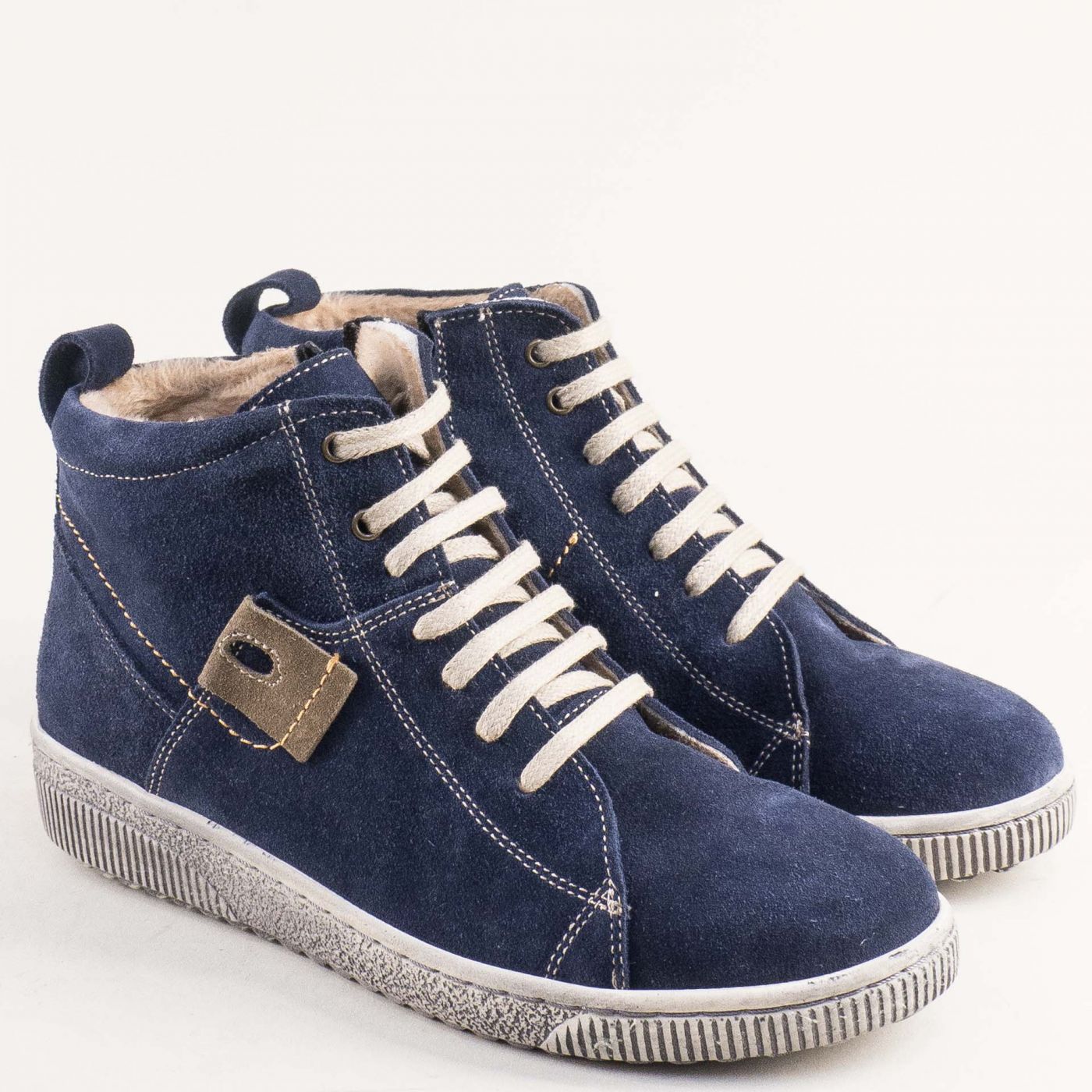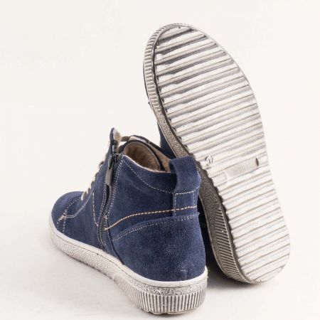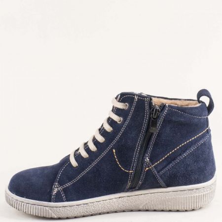 Сини велурени дамски боти меки топли и удобни на бяло равно ходило l7079vs