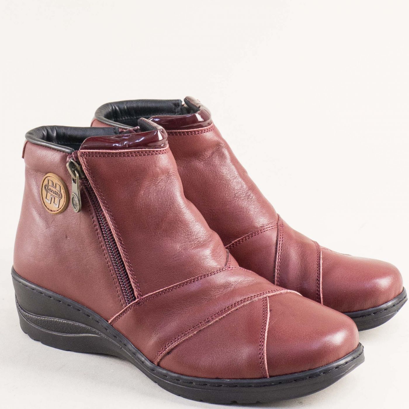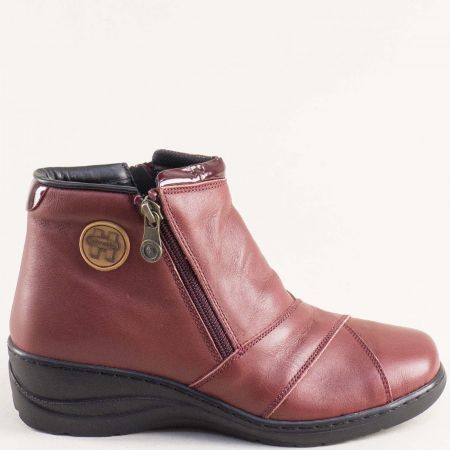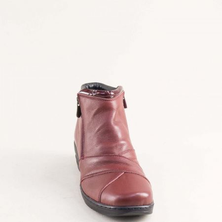 Дамски комфортни боти в цвят бордо с два ципа и декоративни шевове l7102bd