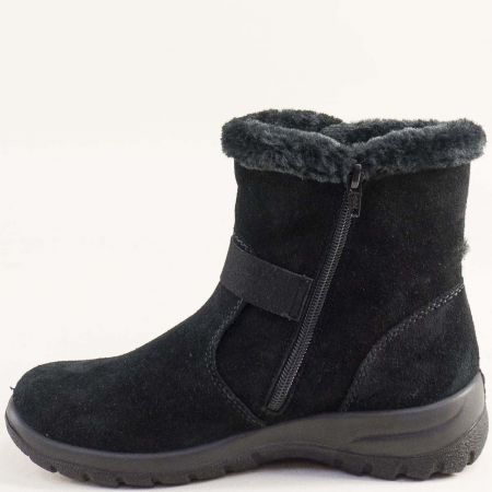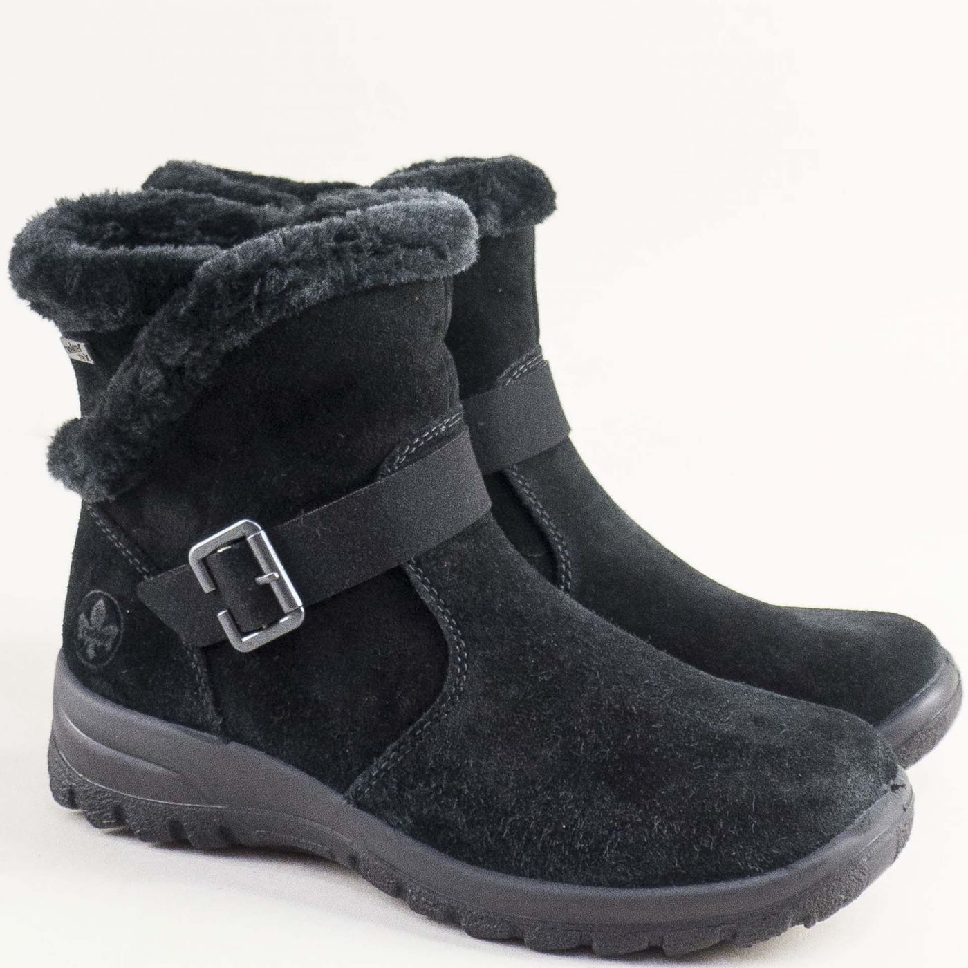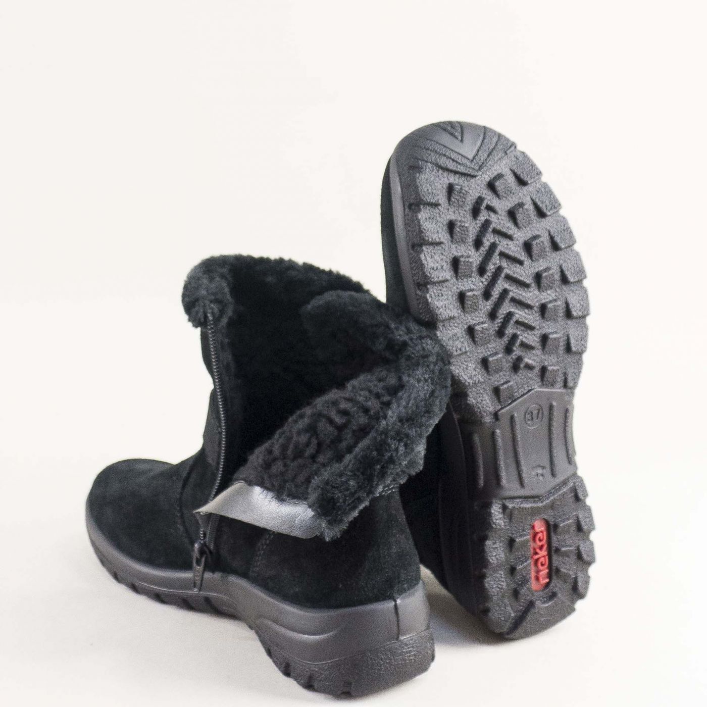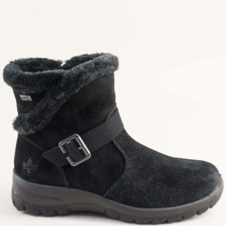 Естетсвен велур дамски боти с топъл хастар на RIEKER в черен цвят l7179-00