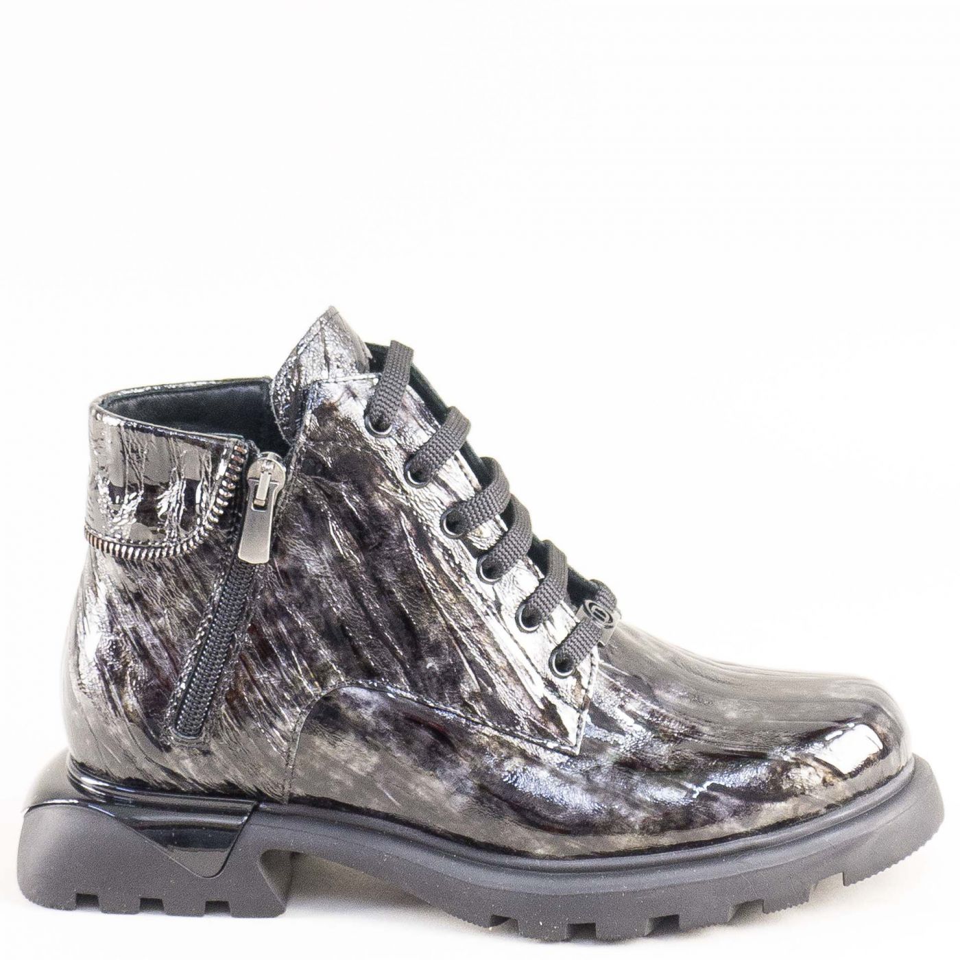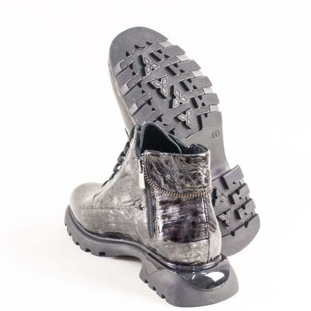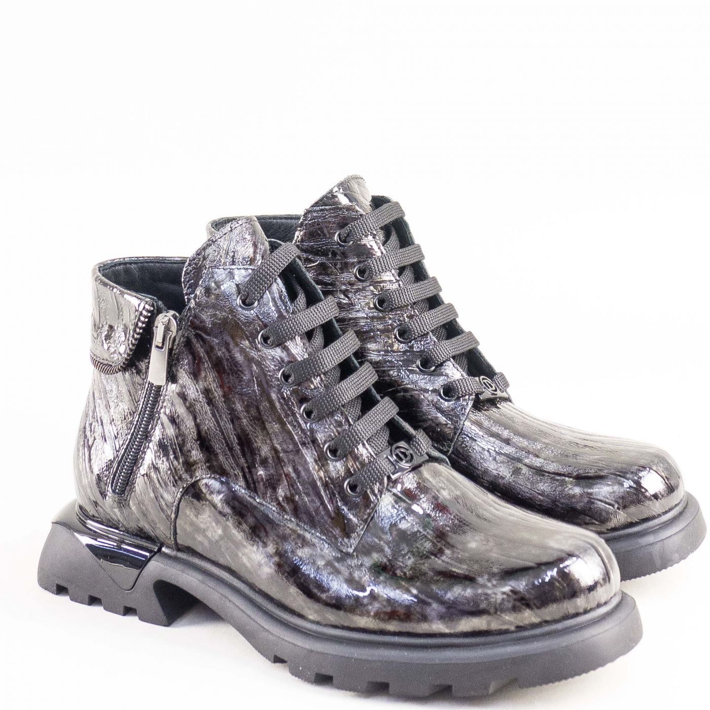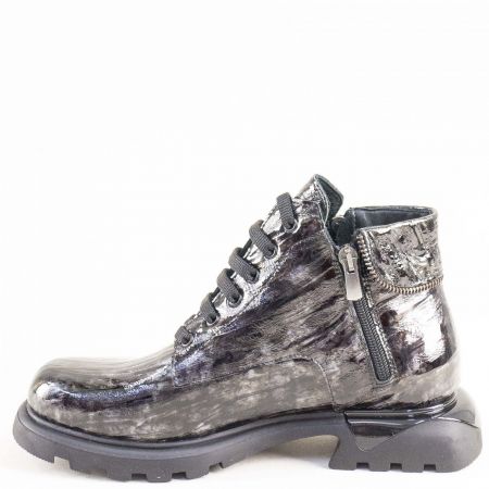 Фешън дамски кларкове в модерен сив лак с връзки и цип mag354mlsv
