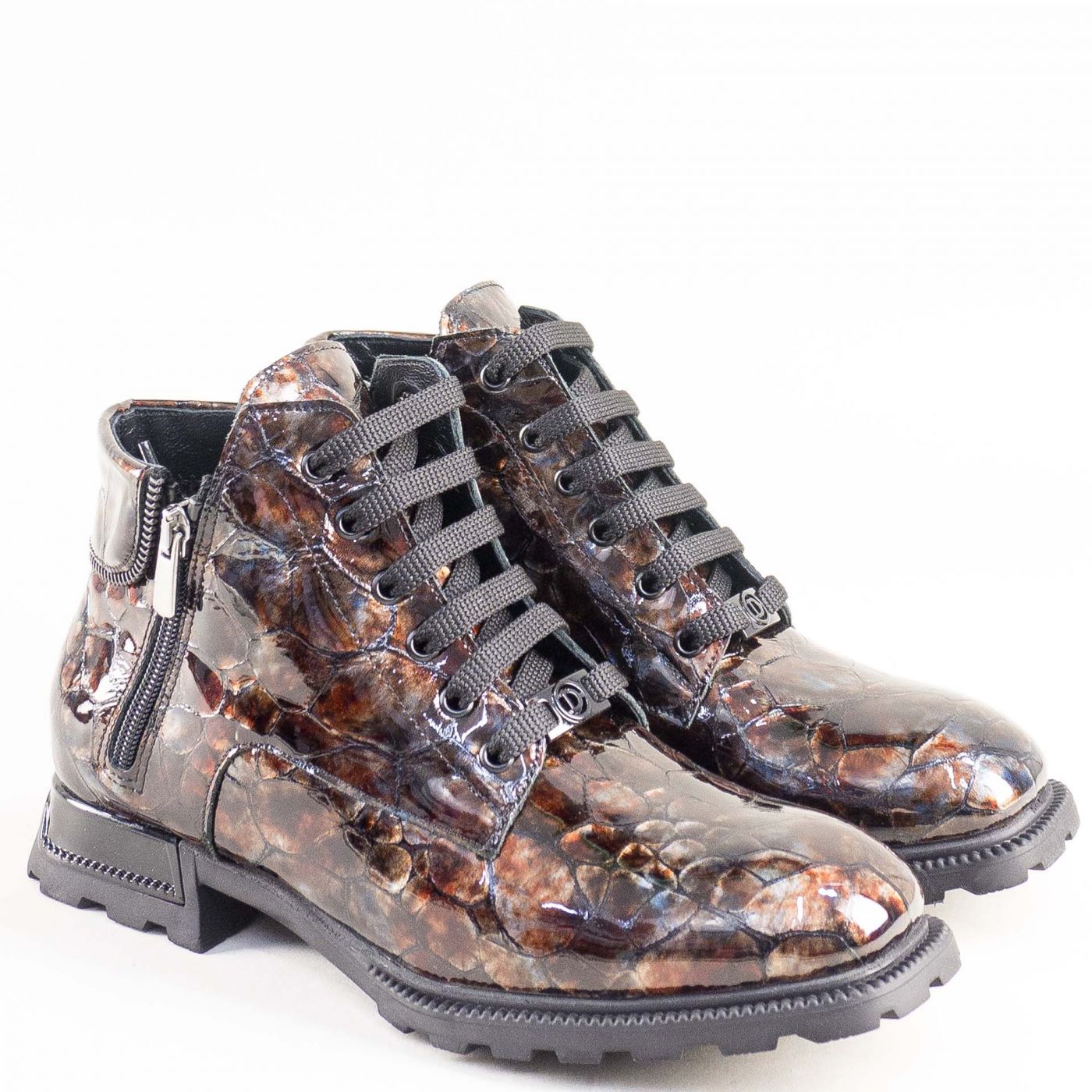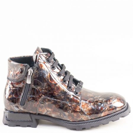 Атрактивни дамски кларкове в кафяв кроко лак на нисък ток mag650krlk