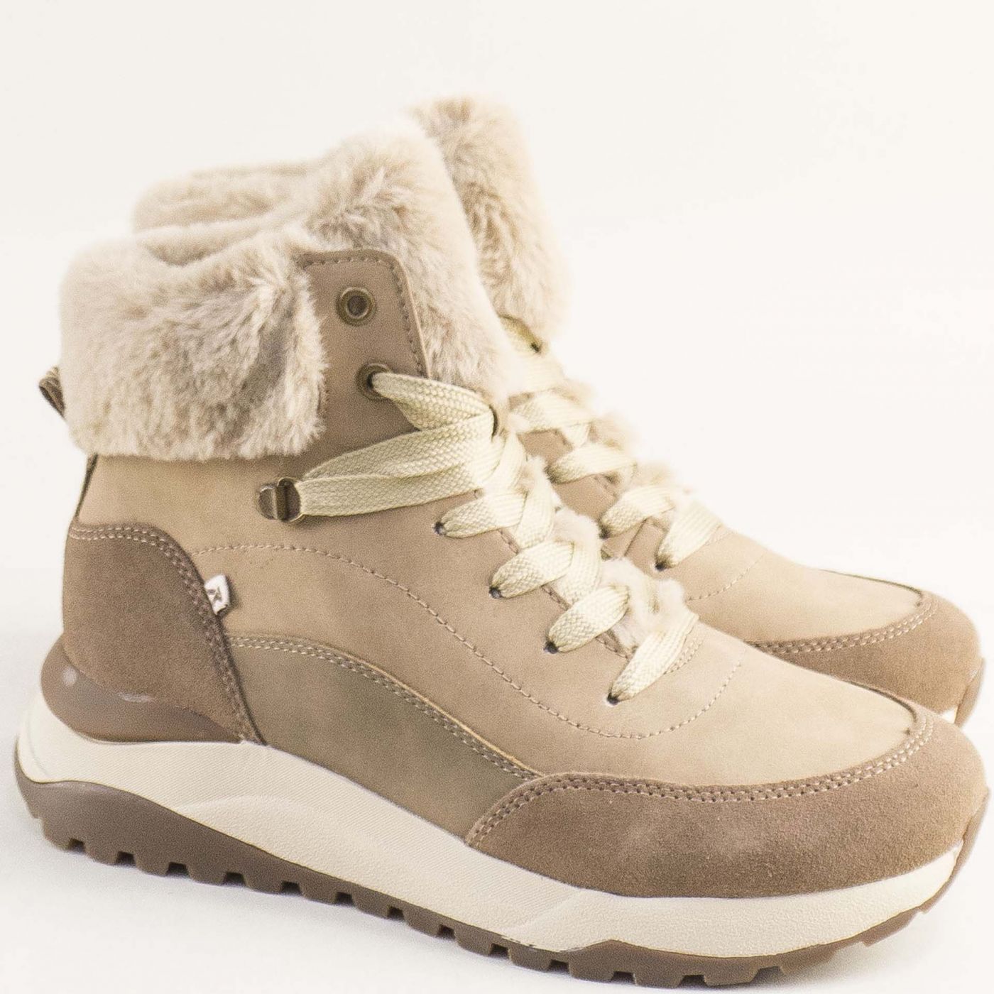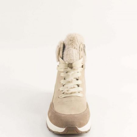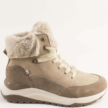Топли дамски боти RIEKER в бежов и кафяв цвят на равно ходило w2571-20