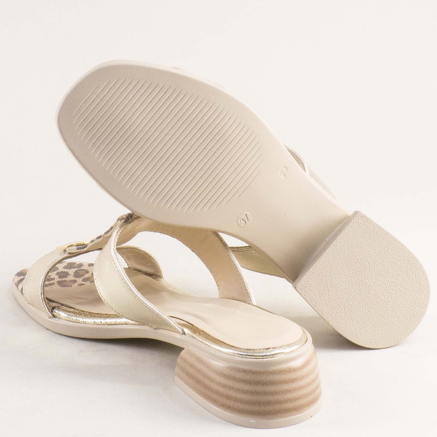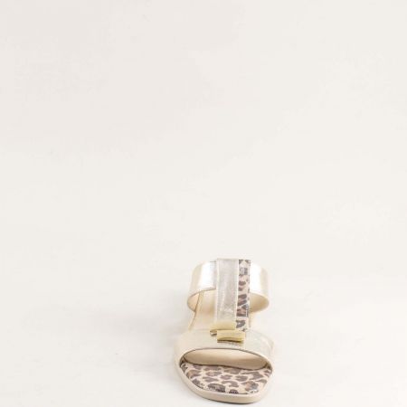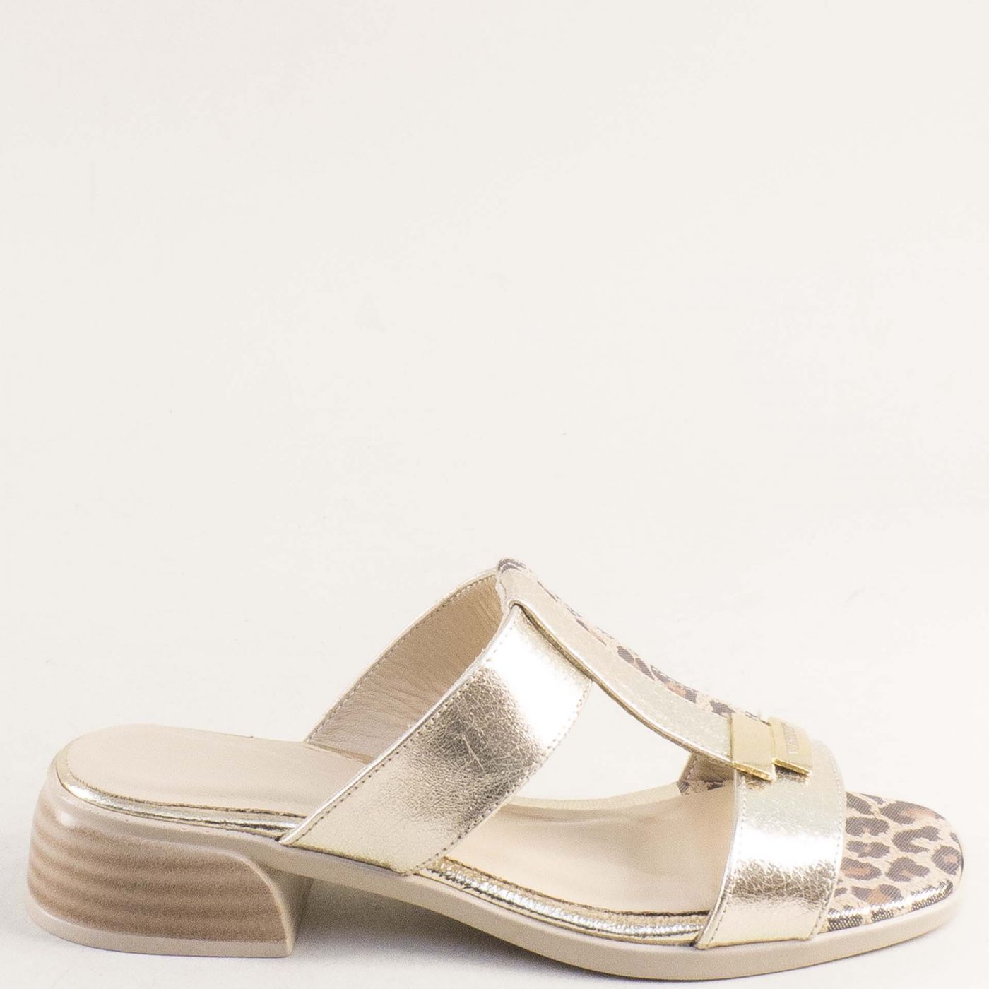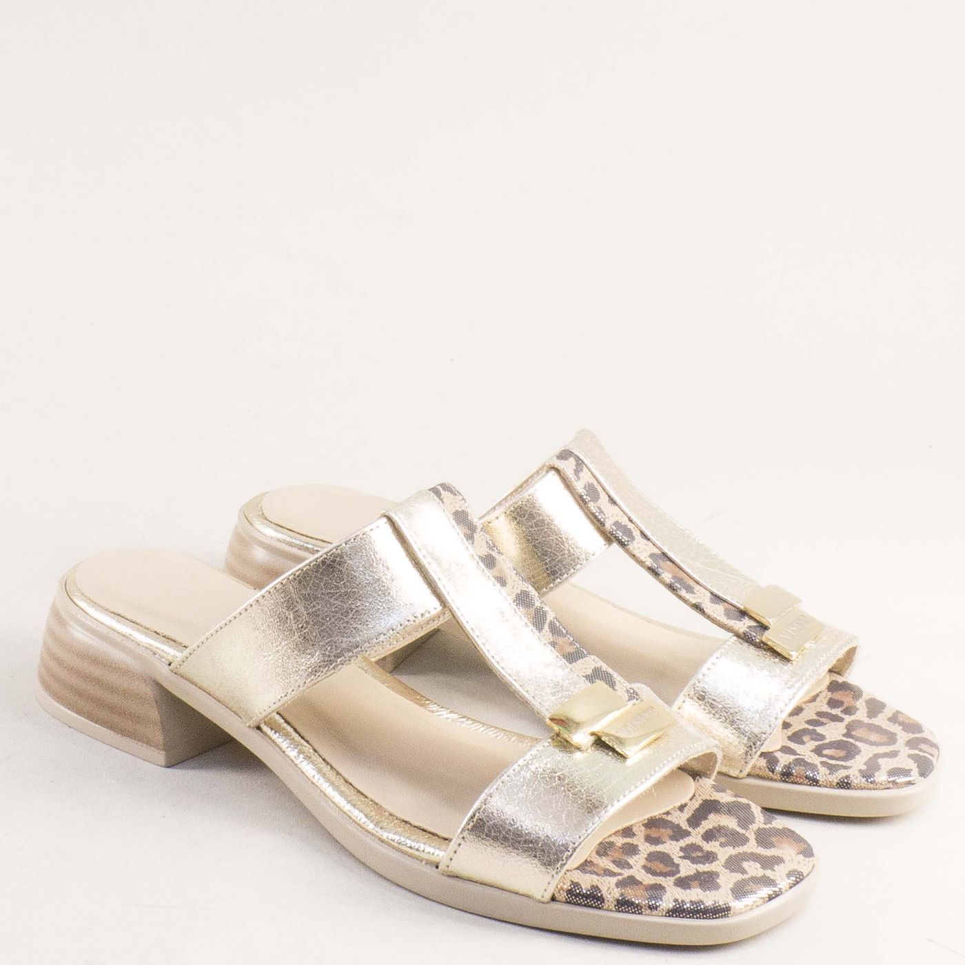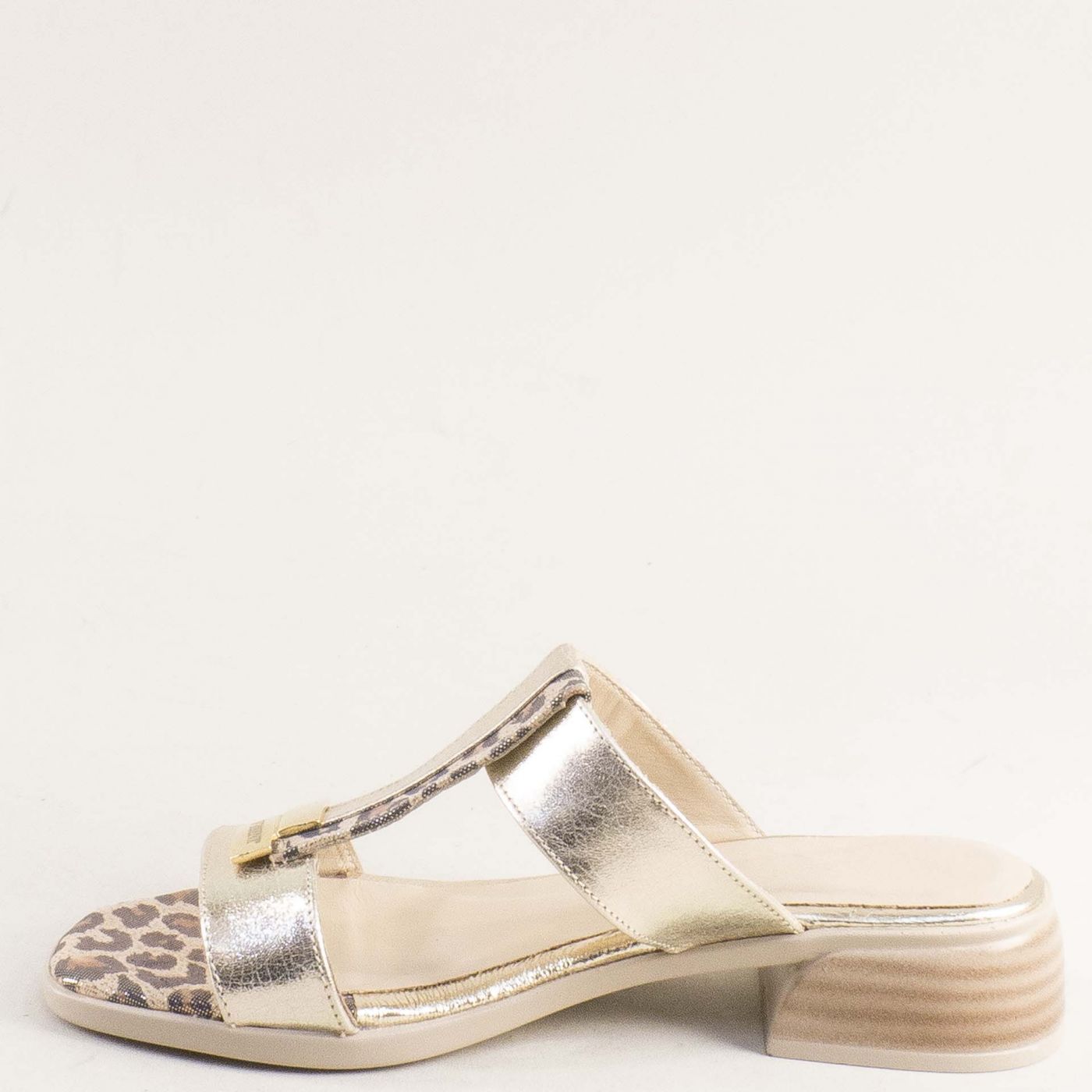 Тренд дамски чехли на среден ток в златисто с леопардов акцент v2212254zl