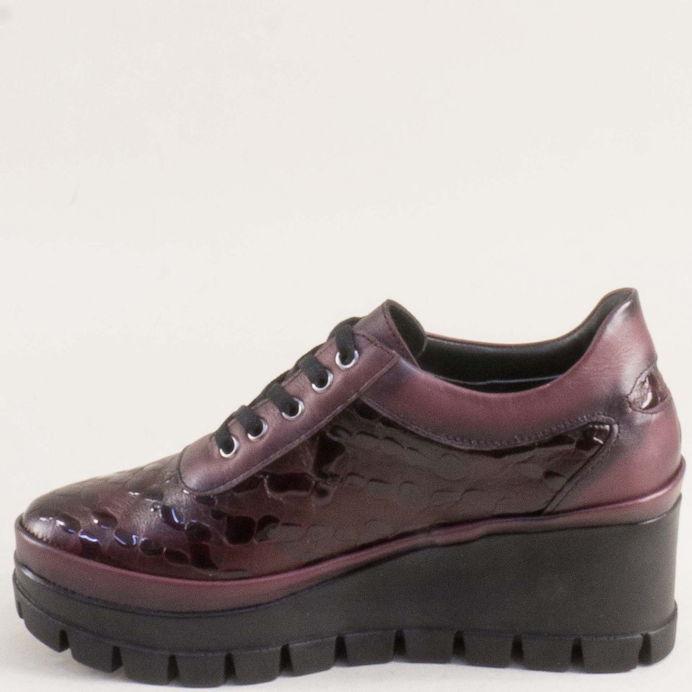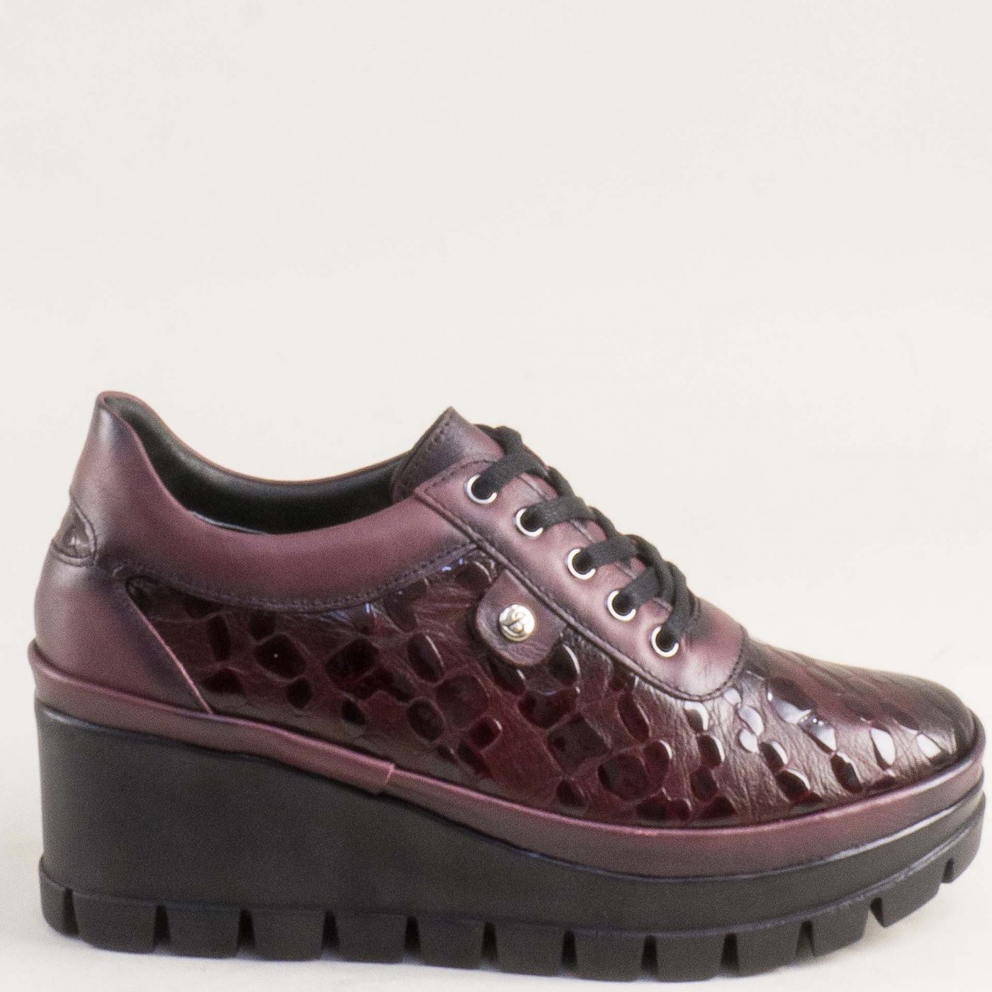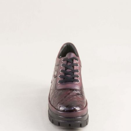 Естествена кожа дамски обувки в цвят бордо с кроко мотиви 70044krbd