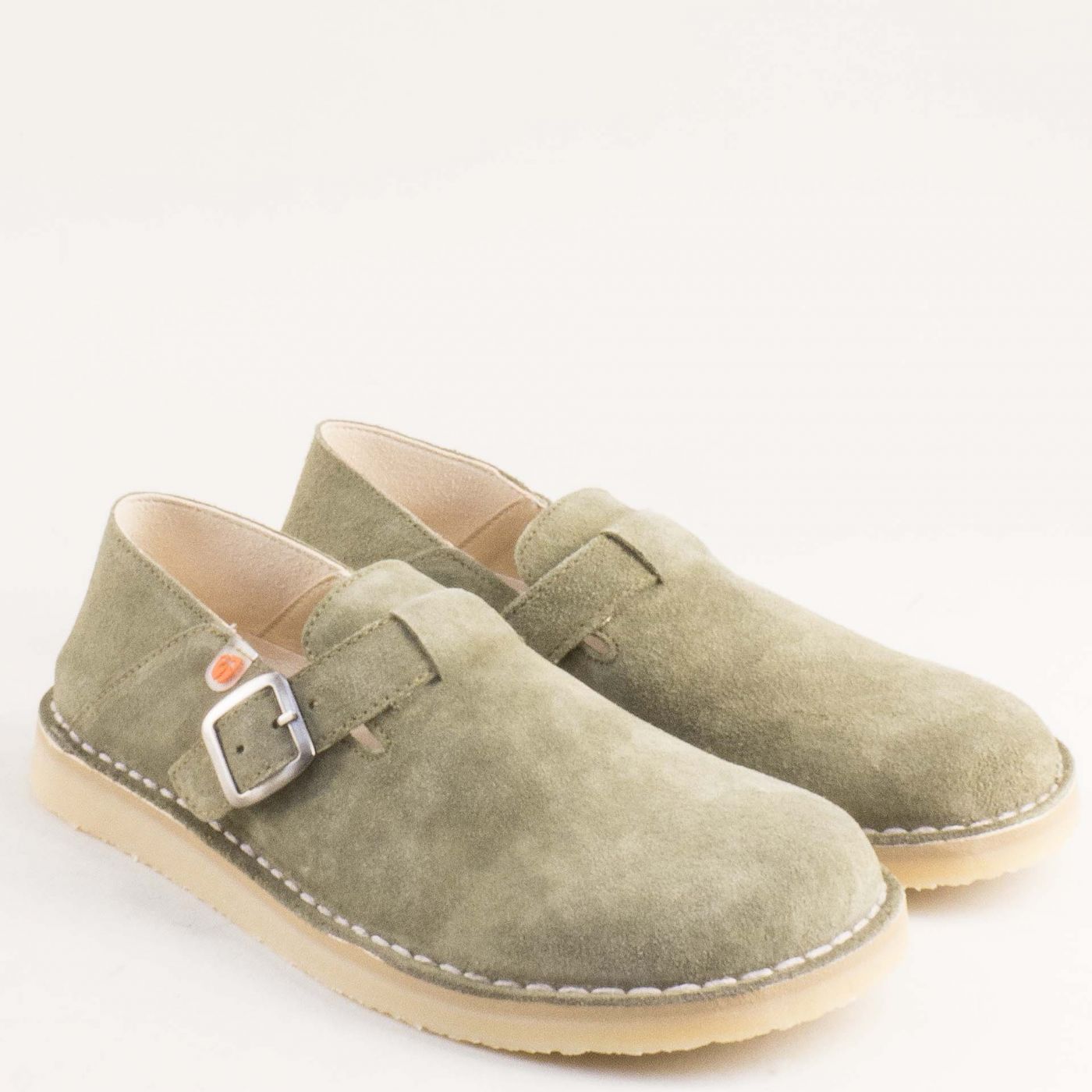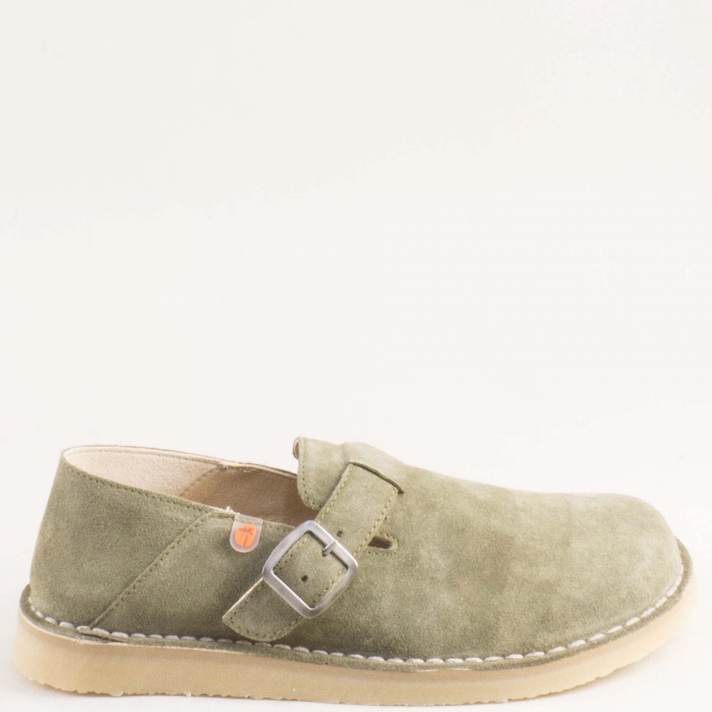 Тренд дамски обувки на равно охдило в модерен зелен набук 8480nz