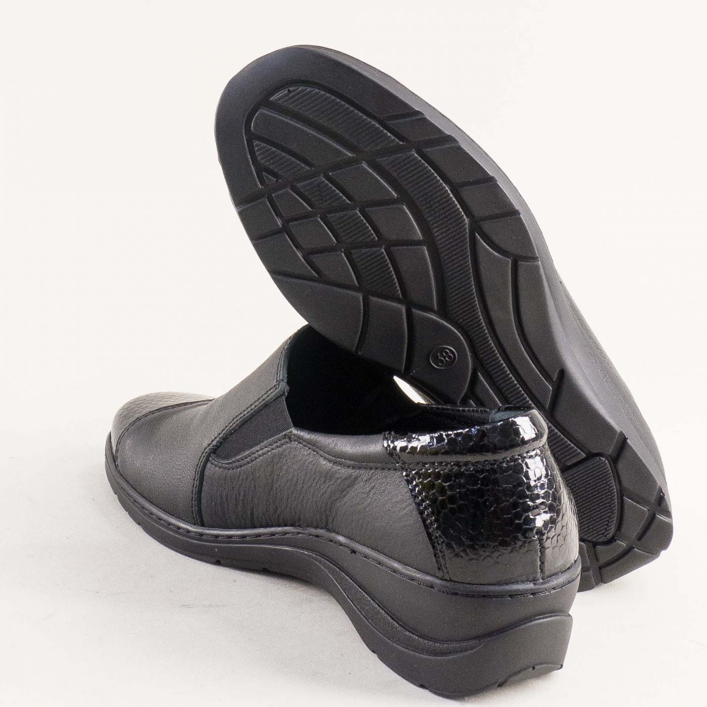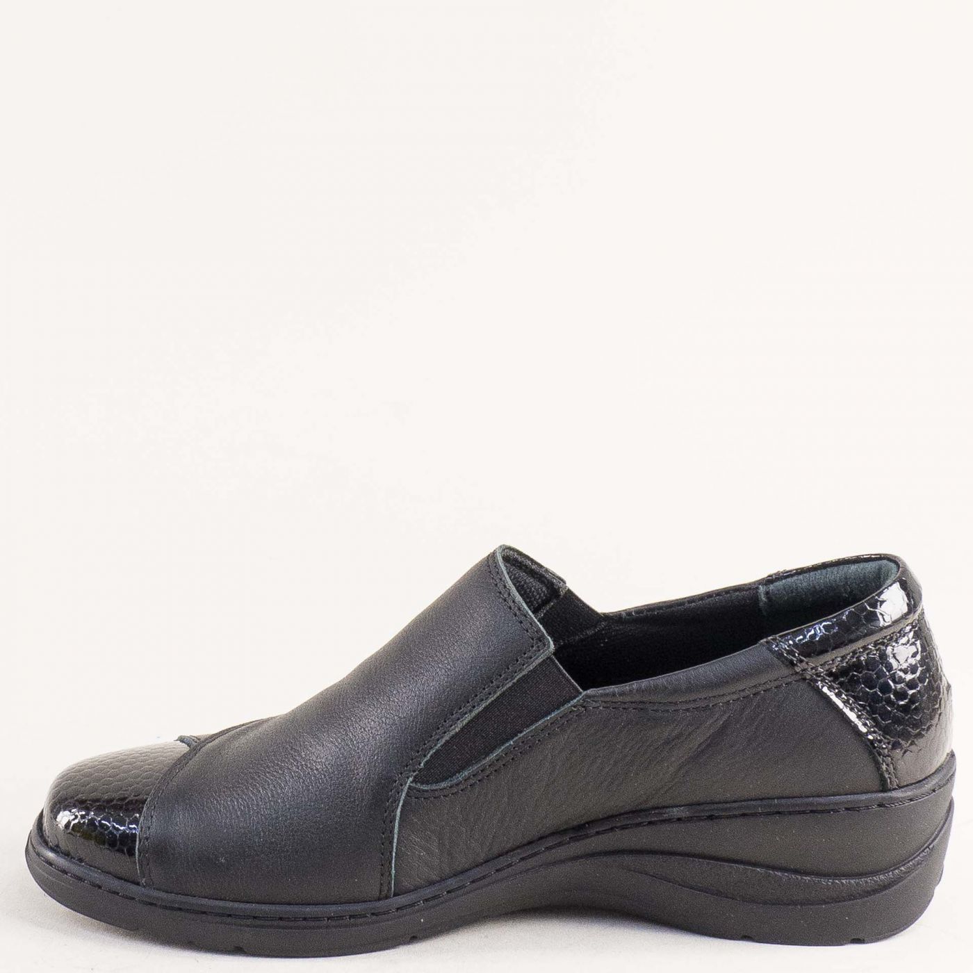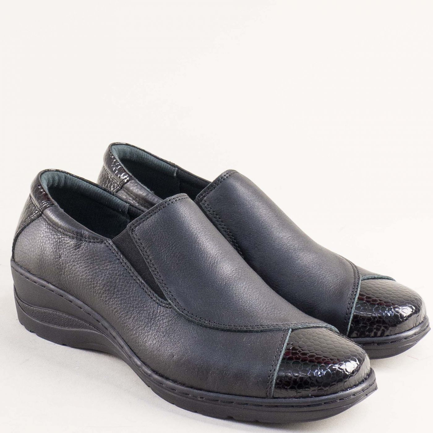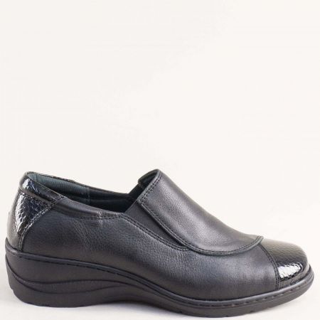 Анатомични дамски обувки LORETTA в коминация от кожа и лак в черно l6147ch