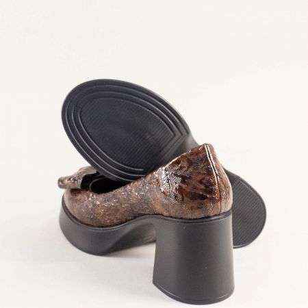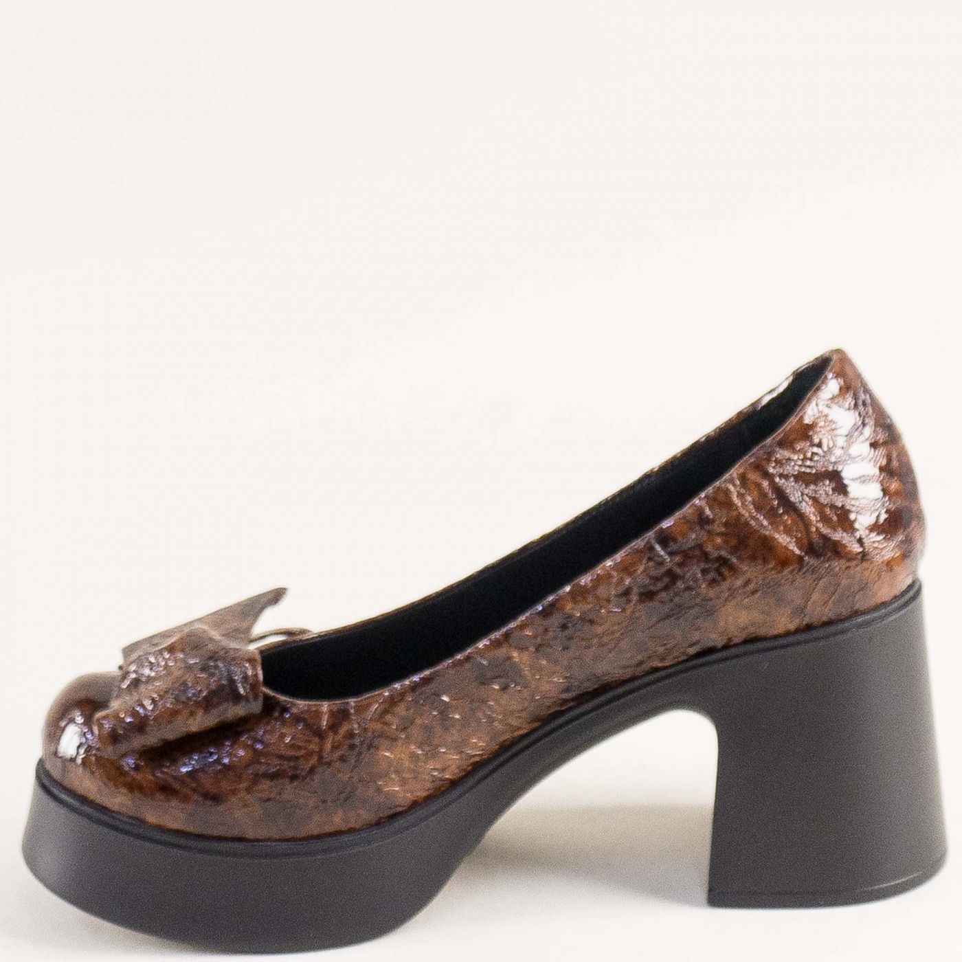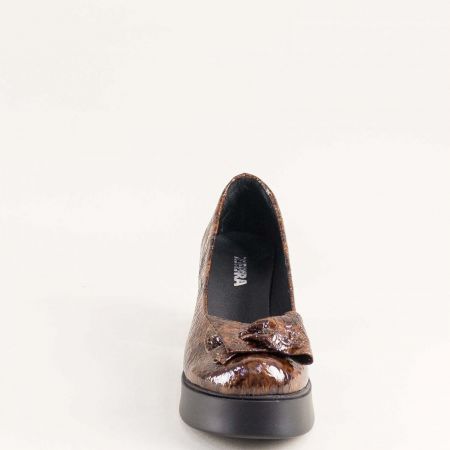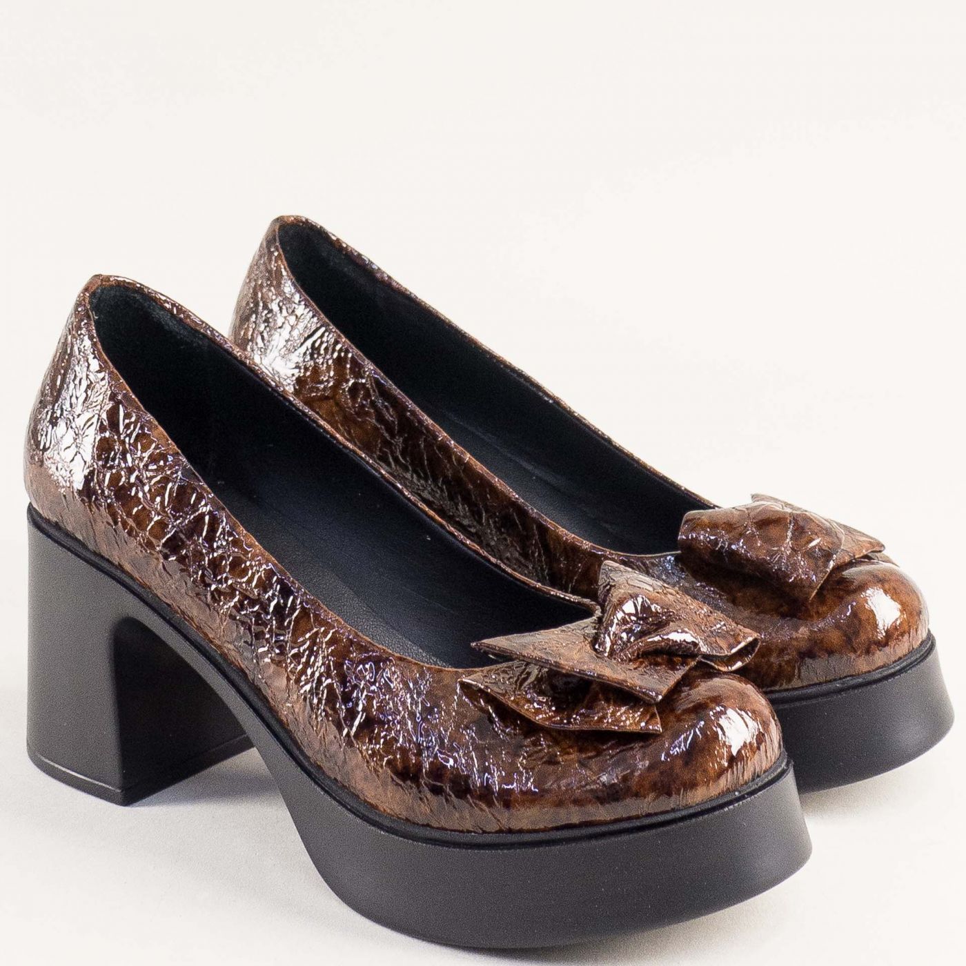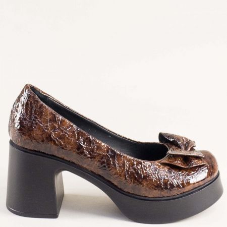 Модерни дамски обувки с атрактивна визия и закачлив аксесоар в кафяв лак mag916mlk