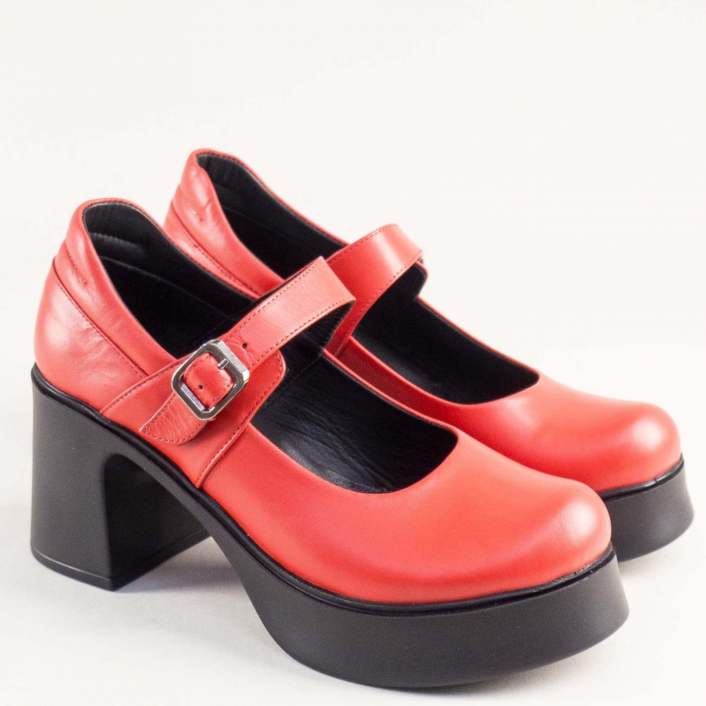 Стилни дамски обувки в модерен червен цвят на черна платформа mag981chv