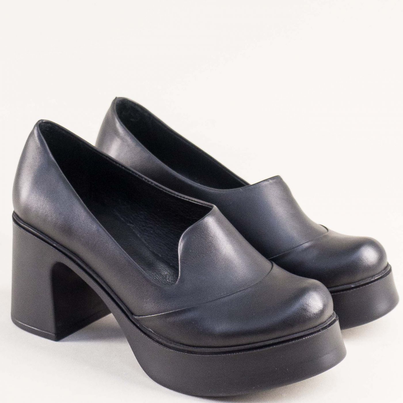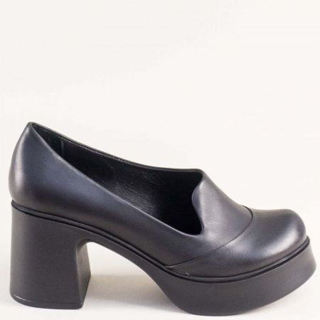 Фешън дамски обувки от естествена кожа в черен цвят на висок ток mag983ch