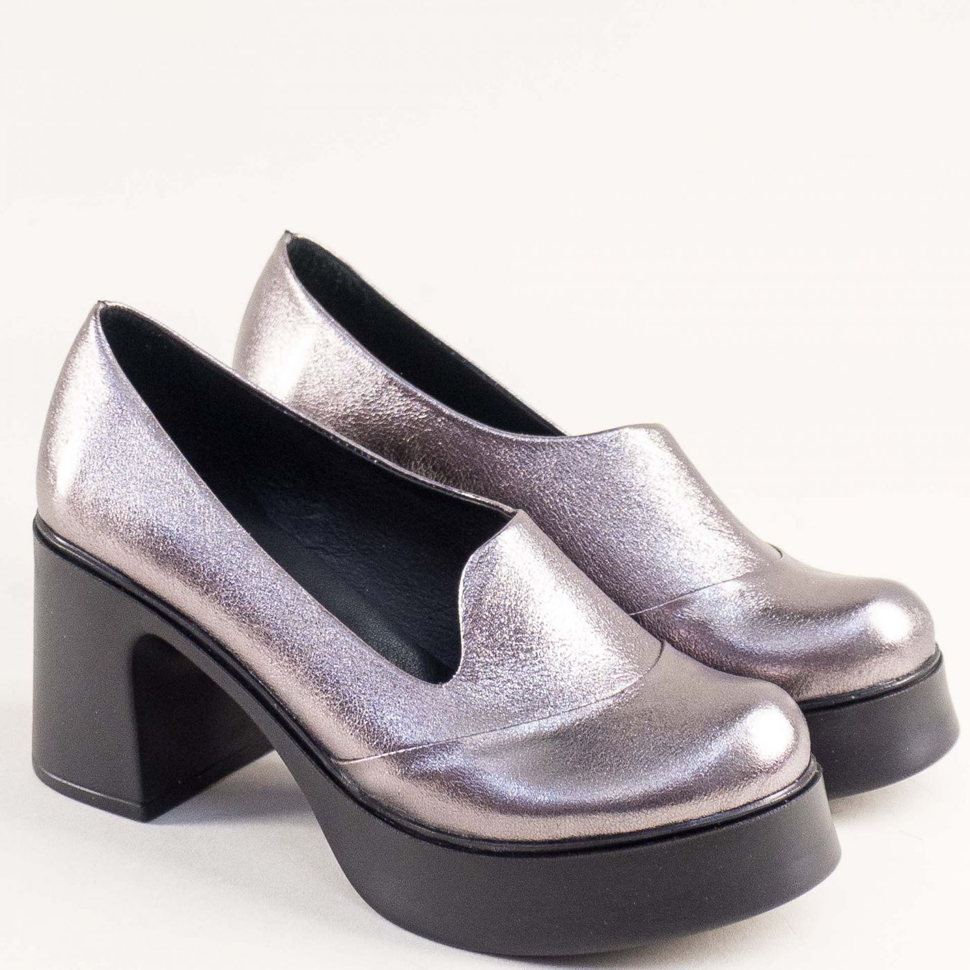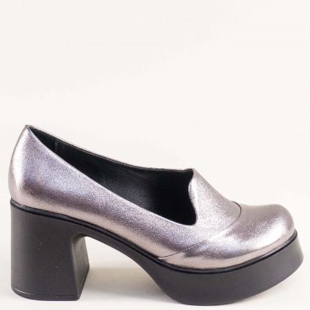 Сребърни дамски обувки с модерна визия на висок ток и платформа mag983sr