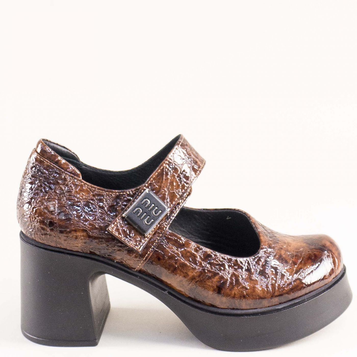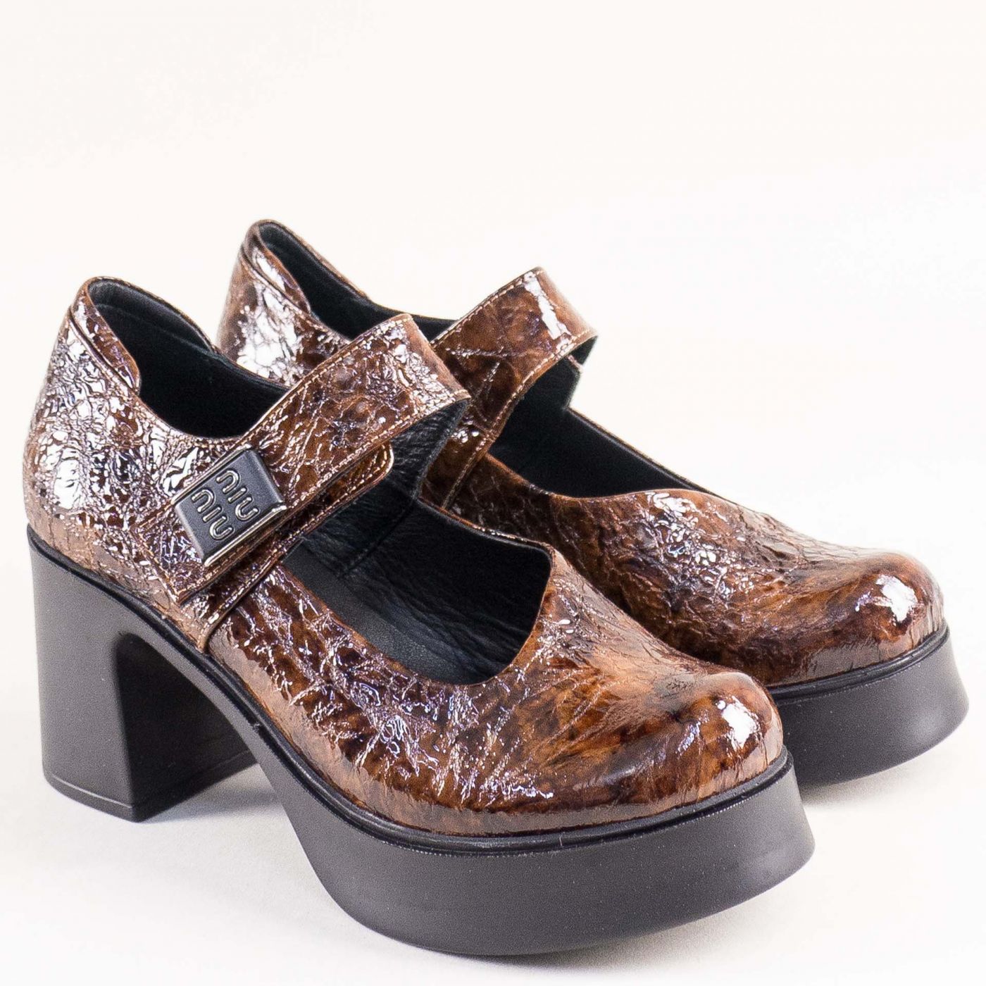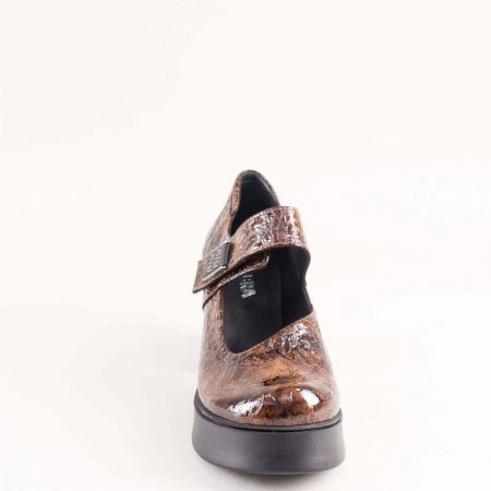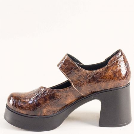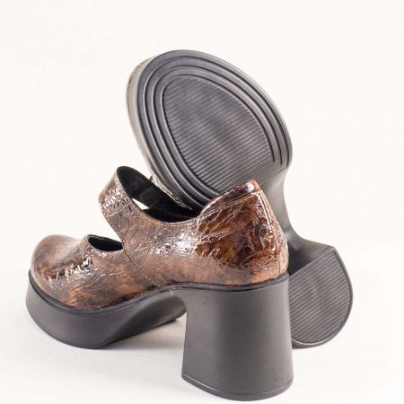 Модерни дамски обувки с атрактивна визия и метален аксесоар в кафяв лак mag997659mlk