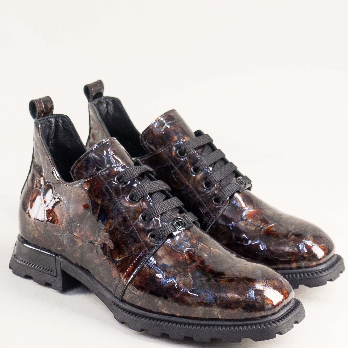 Кафяви дамски боти на грайферно ходило с връзки и цип mag649krlk