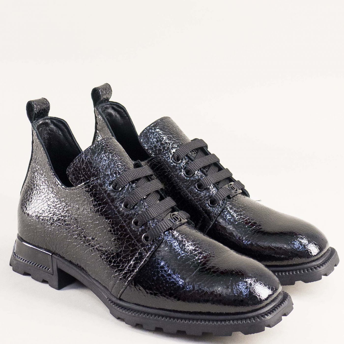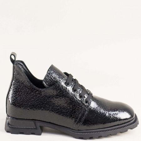Дамски обувки на нисък ток от естествен лак с мачкан ефект mag649mlch