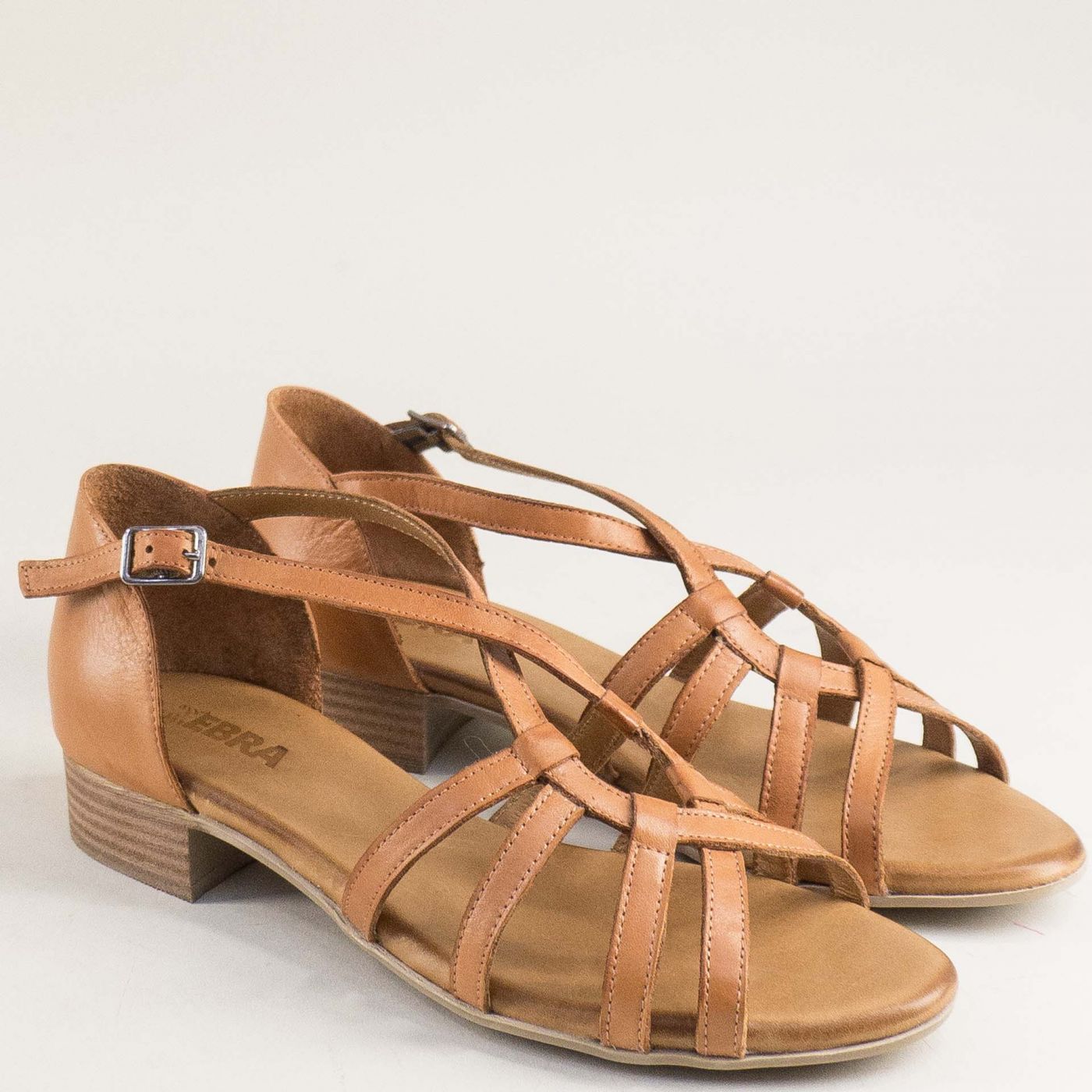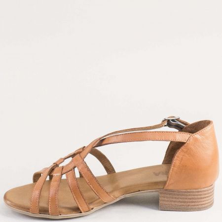 Естествена кожа дамски сандали в кафяв цвят на нисък ток 1845k