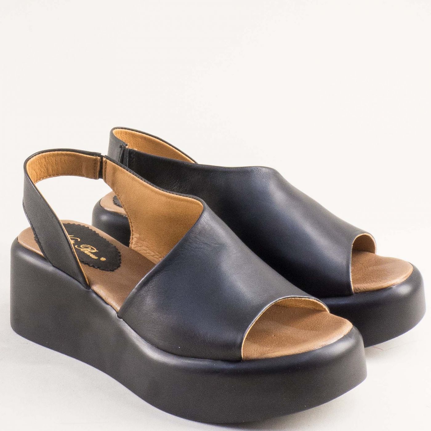 Дамски сандали от естествена кожа в церен цвят с асиметрична лента 255931629ch