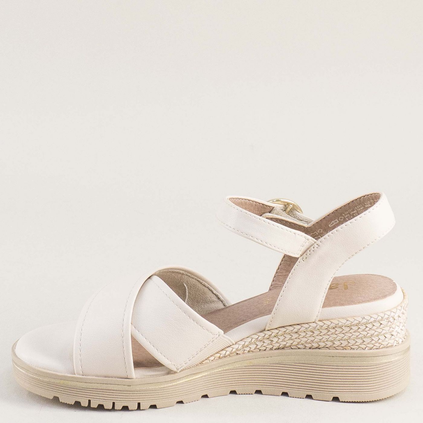 Дамски сандали на клин ходило с преплетени каишки в бежов цвят 8-28777-400