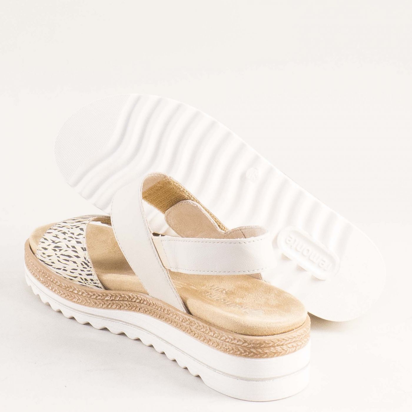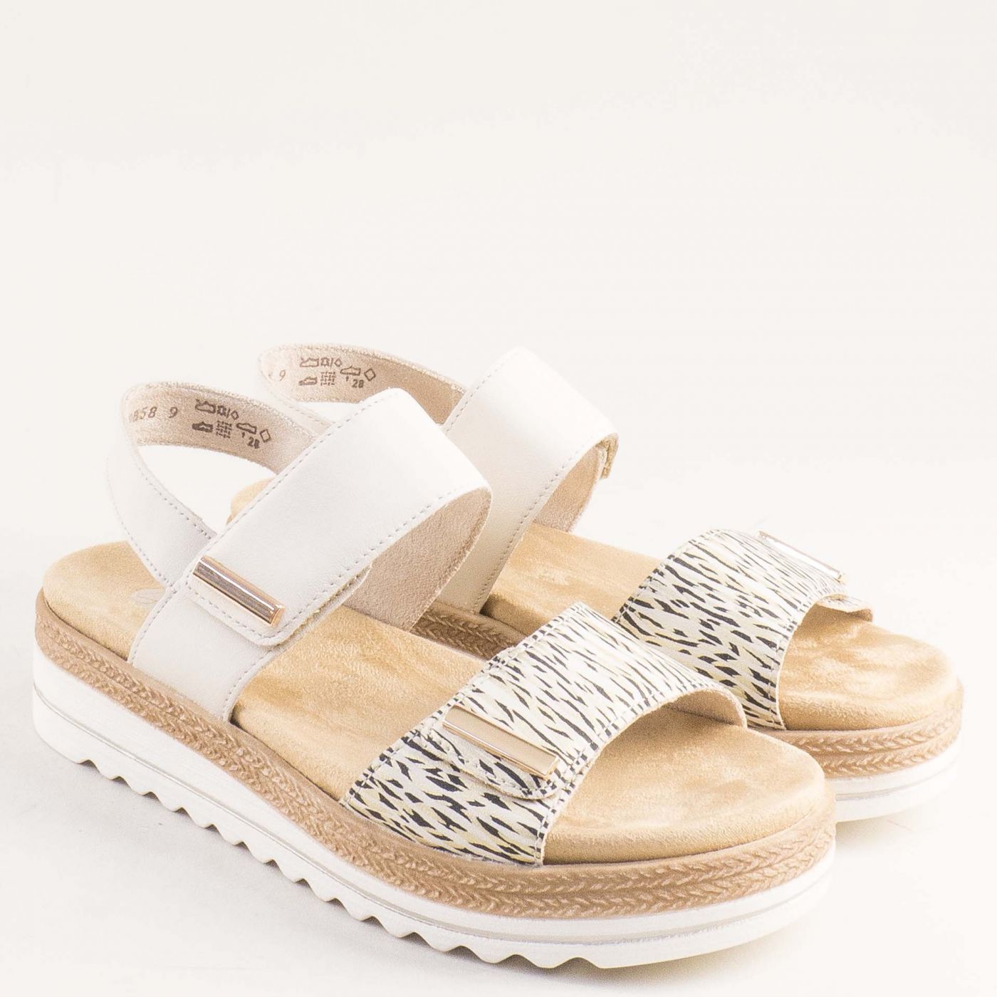 Дамски комфортни сандали REMONTEв бял цвят с атрактивна леопардова каишка d0q59-60