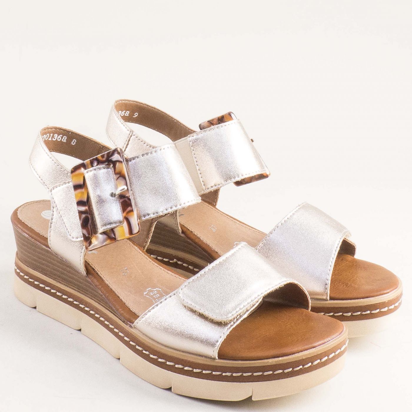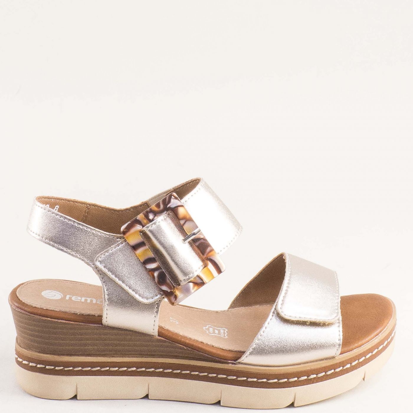 REMONTE Дамски сандали на платформа в златиста кожа с закачлира катарама d2l53-90
