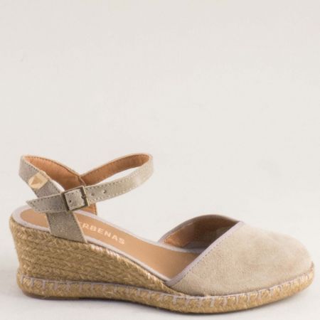 Естествена кожа дамски сандали на платформа в бежов цвят VERBENAS maggienbj