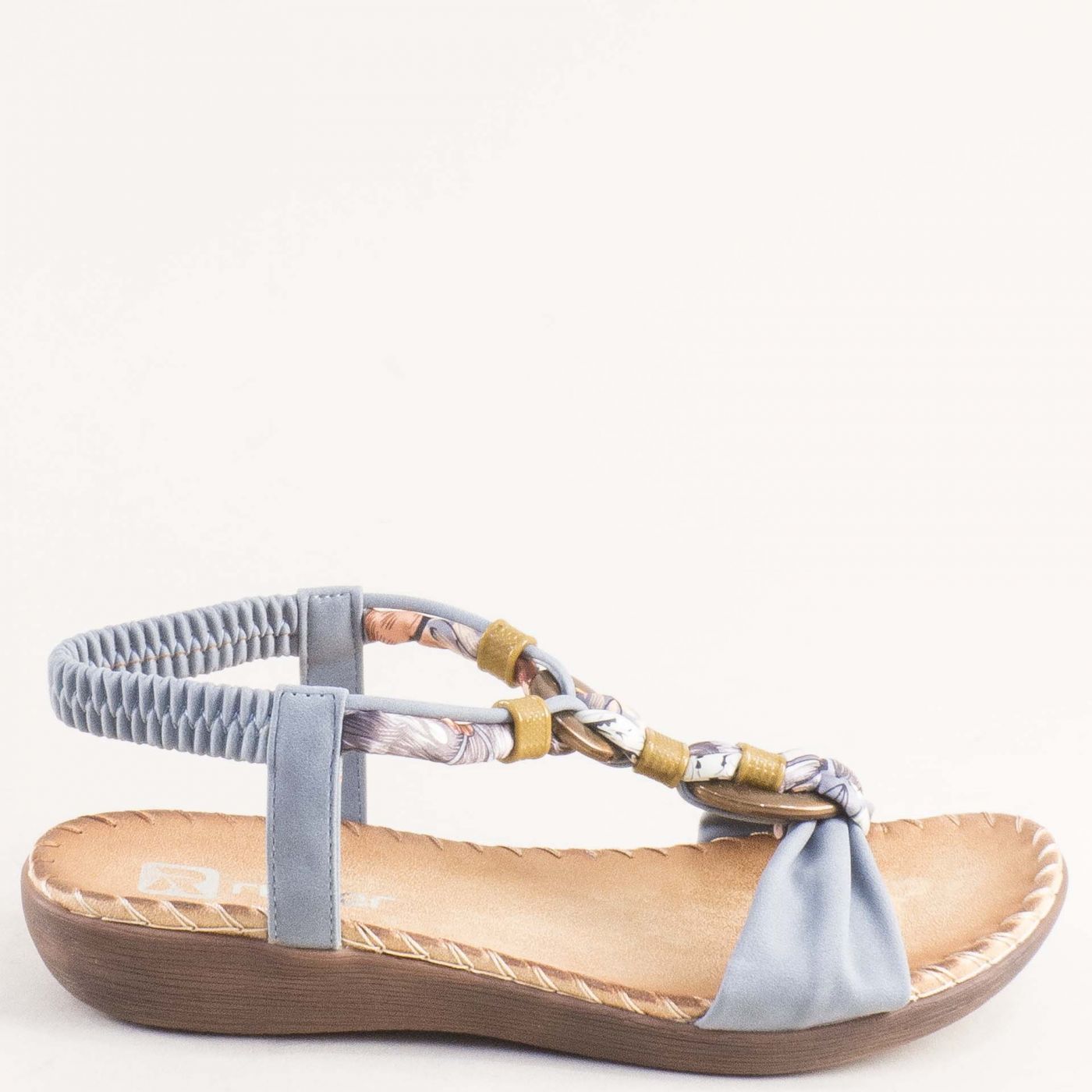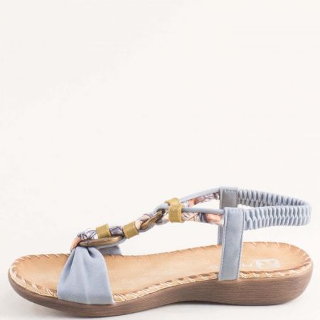 Комфортни дамски сандали RIEKER в син цвят на равно ходило v7568-14